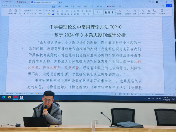 高二年级张超老师则是就论文的写作、发表作经验分享。张超老师强调了论文写作的重要性,指出教学研究是教师专业成长的重要途径,其论文写作则是将教学实践中的经验、思考和研究成果进行总结和呈现的重要方式。在论文写作方面,张超老师分享了他的宝贵经验,并结合自己的以往经历,给出了一些常见的问题和解决方法。最后,张超老师鼓励在场的教师们积极投身教学研究,勇于尝试论文写作与发表,为自身积累宝贵经验。