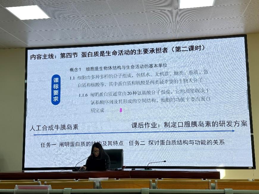 张梦闻老师在智慧课堂评比中脱颖而出,她详细地分享了自己的经验。在智慧课堂的构建过程中,张老师充分利用多媒体资源,制作了生动有趣的教学课件,利用畅言平台帮助学生理解蛋白质结构这一抽象的生物学知识点。同时,张老师还借助智慧课堂平台的互动功能,开展了在线测试、小组讨论等活动。学生们可以在课堂上即时反馈自己的学习情况,老师也能根据学生的答题情况及时调整教学策略,实现了教学的精准化和个性化。