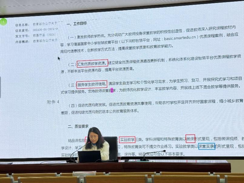 李小会老师围绕基础教育精品课录制和优质课比赛分享了自己的经验。在精品课录制方面,李老师强调了情境为载体,问题导学与重难点突出、教学过程重评价等,并提出日常教学中认真研读标、加强理论学习等建议。