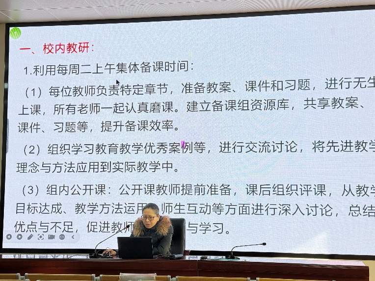活动伊始,三个年级的教研组长王艳艳老师、李小会老师、程慧老师依次就上学期的工作进行了详细的总结汇报,全面呈现了上学期生物组的工作成果与努力,并阐述本学期的工作计划。上学期三个年级组均开展了多样化的教研活动,组织组内教师之间的听课、评课活动;组长们还就上学期的期中、期末考试情况进行了细致的分析,发现学生在某些知识点上存在理解不深入、应用不灵活的问题,同时也发现了教学中存在的一些不足之处,通过分析,针对这些问题,教研组长们提出了相应的改进措施。