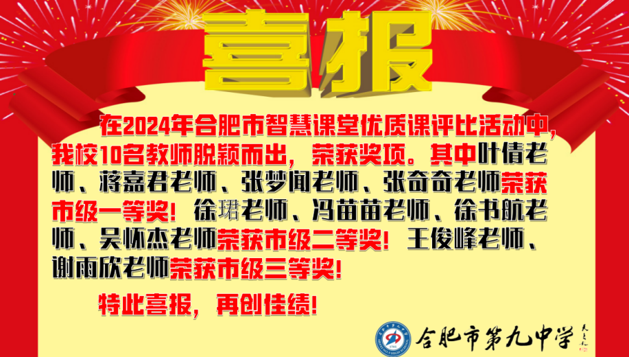 喜讯传来,这不仅是对参赛教师个人努力的高度认可,更是合肥九中在信息化教学中深耕细作、不断探索的有力证明。本次比赛中青年教师勇挑重担,展现了属于合肥九中青年教师的能力与风采。