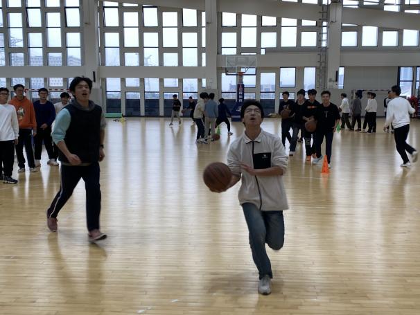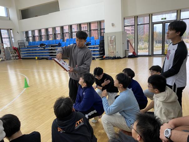 第三节课是篮球项目《篮球战术简单配合——传切、一传一切等战术配合》,授课教师顾轲。整节课始终围绕“学、练、赛、评”一体化的教学设计。以学生分组开展学练赛,把课堂还给学生。给老师们展示了一节充满团队合作、小组竞争的快乐课堂。