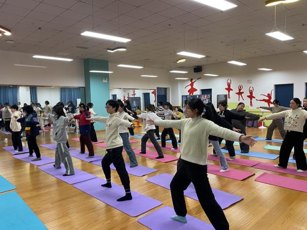 第四节课是瑜伽项目《瑜伽——基础瑜伽体式》,授课教师夏子怡。全程教师领做,学生跟做,层层递进,细致入微。展示出瑜伽不仅是一项可以放松身心,又能发展身体柔韧性与平衡能力的项目。