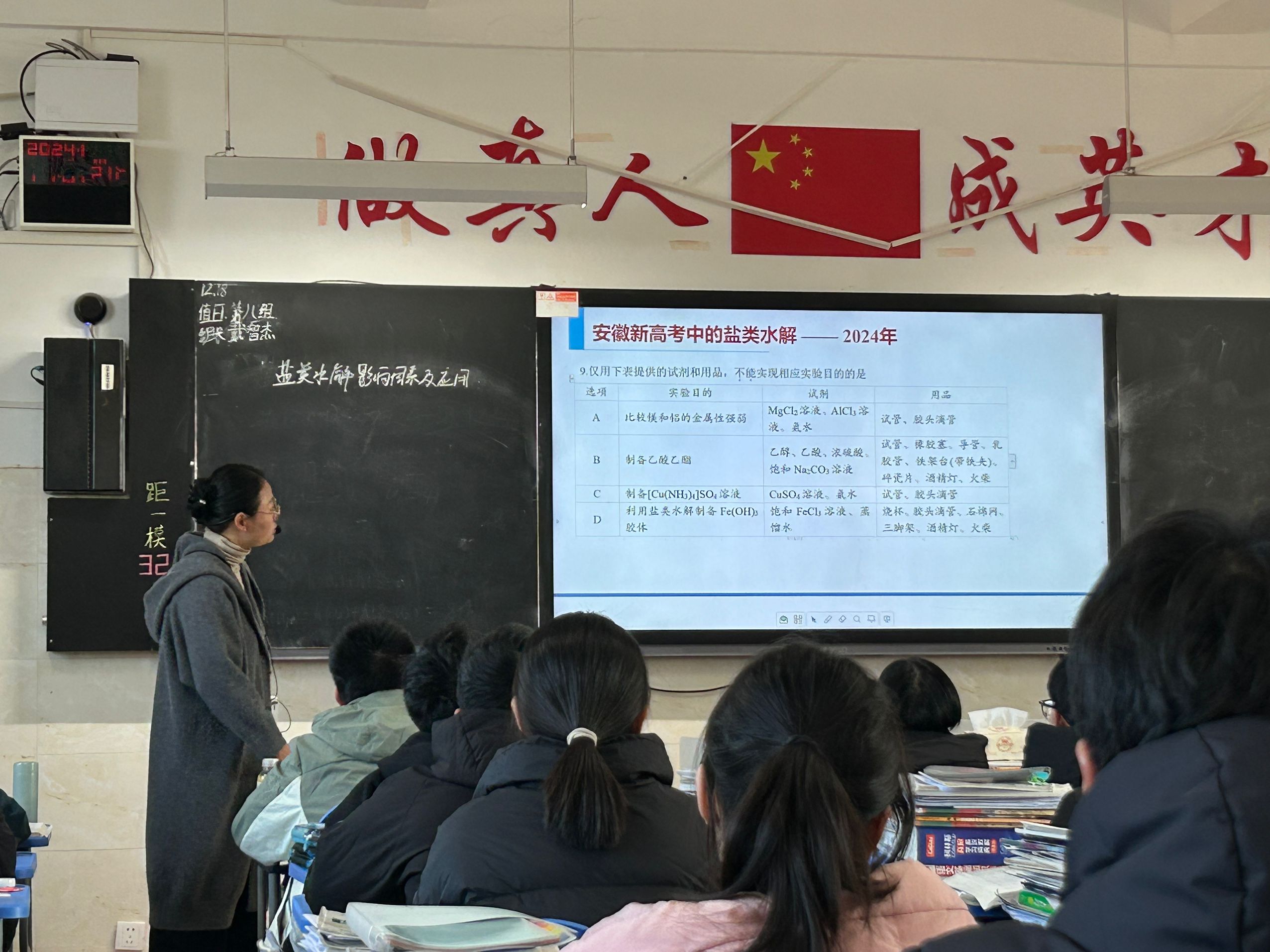 近日,合肥九中对高三化学教学进行了视导。此次视导旨在提升高三化学教学质量,为高考冲刺助力。视导过程中,合肥工业大学附属中学徐伟主任仔细查阅了教师的教案、作业批改、教研活动记录、集体备课记录等资料,对教师们严谨认真的教学态度表示赞赏,同时也指出了在教学计划制定、教学方法创新等方面存在的不足之处,并提出了具体的改进要求。随后深入课堂,认真观察了高三化学教师的真实课堂。教师们精心准备,以扎实的专业知识和丰富的教学经验,为学生们呈现了精彩的化学课。