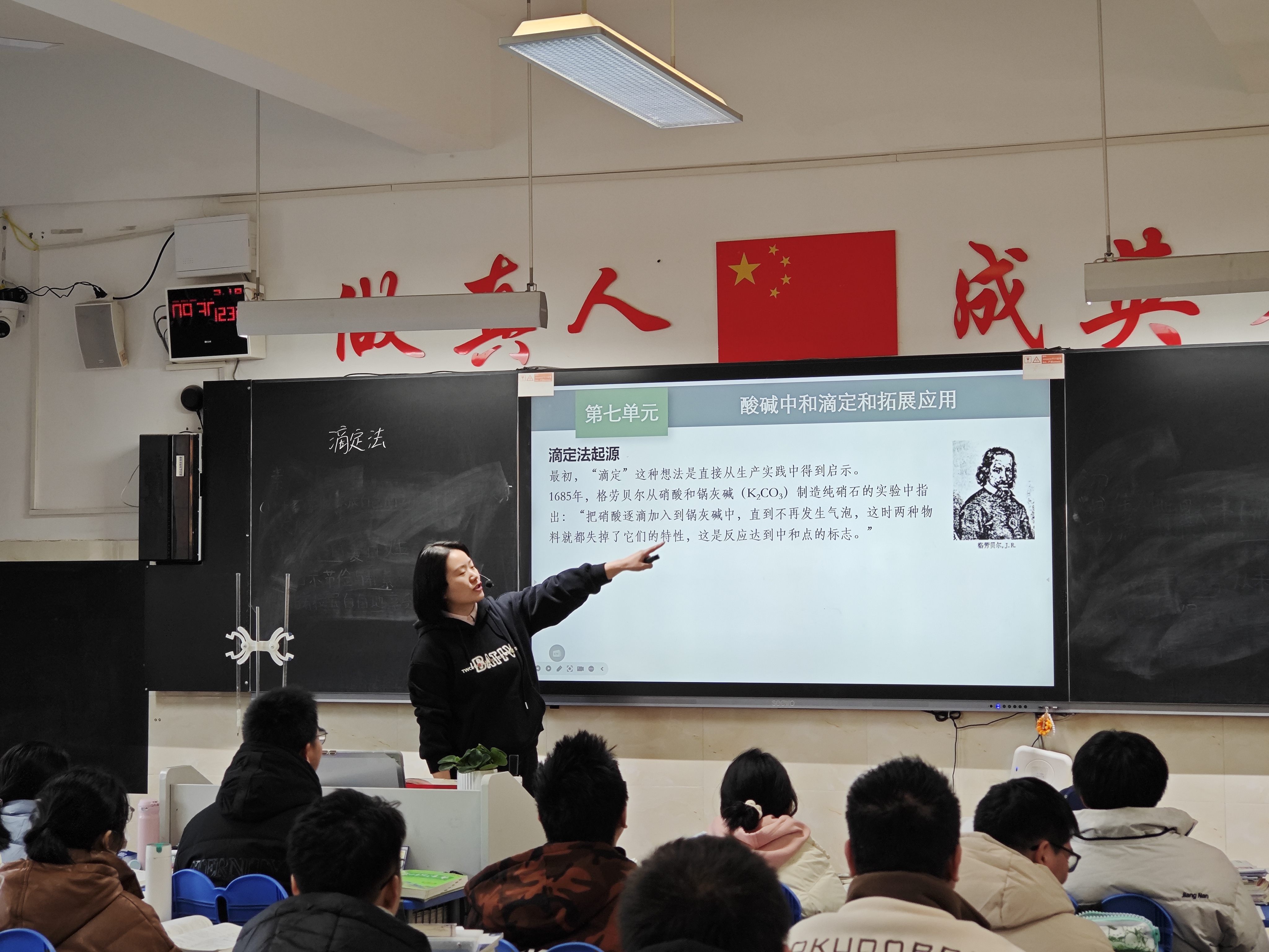 第一节王倩老师以生动形象的方式讲解了酸碱滴定的原理和方法。通过学生代表进行实验操作演示,让同学们直观地了解酸碱滴定的过程。在互动环节,学生们积极提问,教师耐心解答,进一步加深了学生对酸碱滴定的理解。