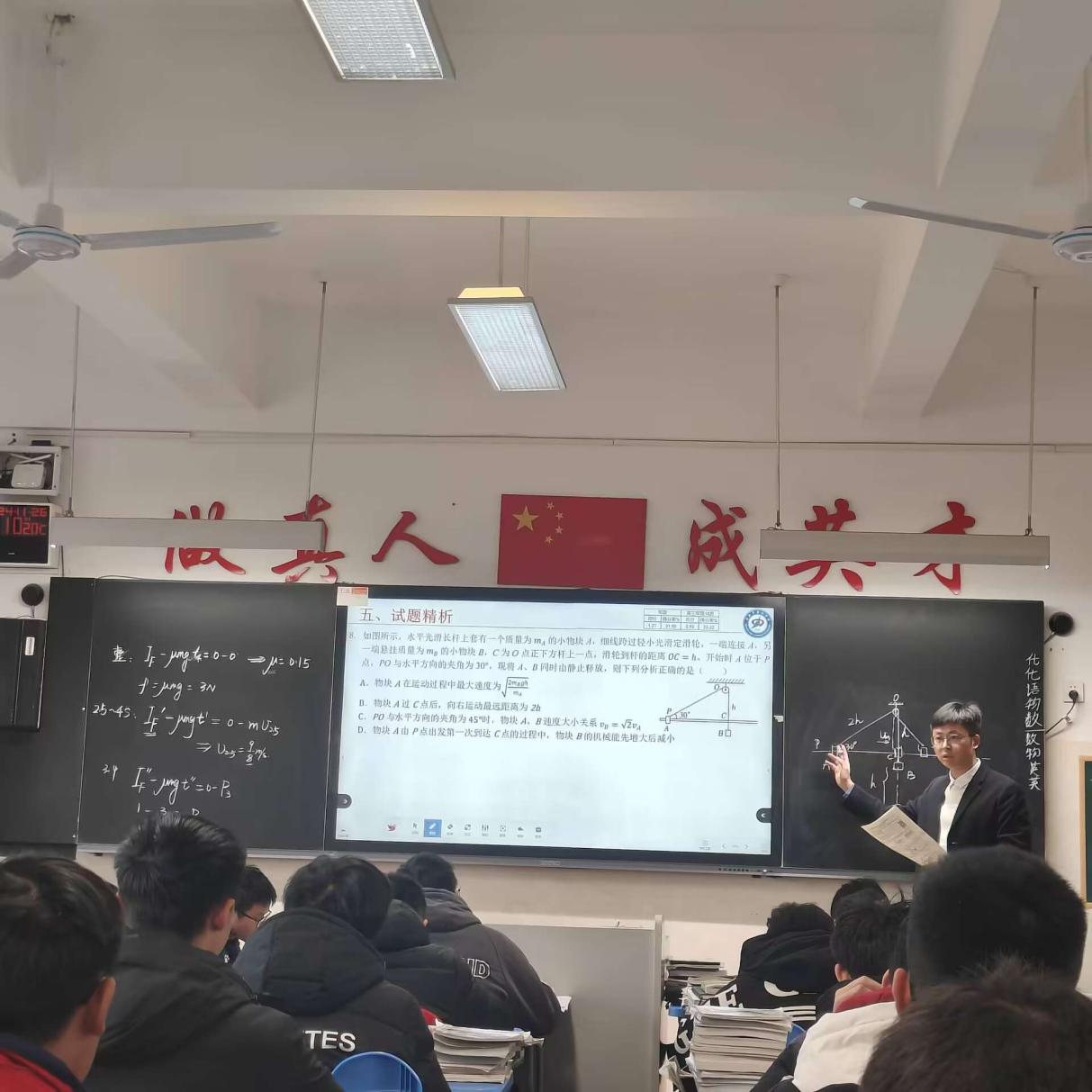 此次活动的主要目的是通过大数据分析,针对期中考试结果进行详细讲评,从而更精确地指导教学和学习,提高备考效率。何佳骥和贾良慧分别就试卷中的难点和实验题进行了精彩的讲解和分享。何佳骥针对试卷中的动量定理、能量守恒等难点问题进行了深入分析。他通过大量的数据比对,找出学生在学习这些概念时普遍存在的问题,并针对性地提出了解决方案。例如,他指出学生在解决动量定理问题时常见的误区,强调了理论与实用结合的重要性,并提供了多种情境模拟的教学案例。
