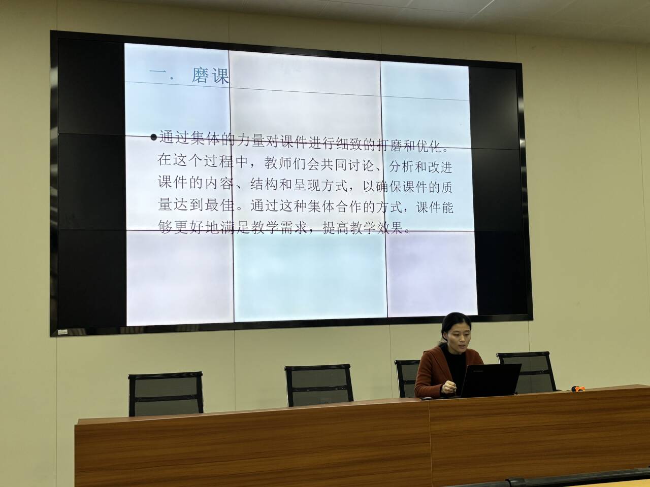 高一年级教研组长江平平老师从“磨课、问题、进度、作业”四个方面汇报了高一年级历史组的工作。江平平提到教师们通过共同讨论、分析和改进课件的内容、结构和呈现方式,以确保课件的质量达到最佳,在课件的最后部分,教师会将本课的重点内容以问题的形式呈现出来,这种方式有助于学生更好地理解和掌握课程的核心知识点;教学进度和作业布置始终保持统一,以确保所有学生在同一时间段内掌握相同的知识点。