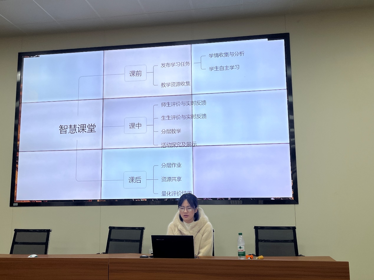 高维嘉老师分享了思政视域下的跨学科融合课程《时代功勋——培育和践行社会主义核心价值观》。她介绍了课程思政与历史学科融合的教学设计思路,与大家交流了与其他学科组老师共同设计课程中的收获和启示。