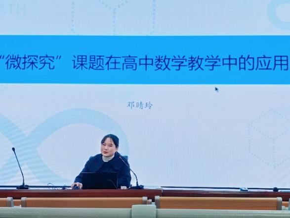高一年级邓晴玲老师以“微探究”课题在高中数学教学中的应用为主题,提出教师在平时的课堂中要注重发展学生思维能力,培养学生核心素养,在教学环节中融入“微探究”,同时,邓老师还举了具体的教学案例,激发了各位老师对数学教学的深度思考。