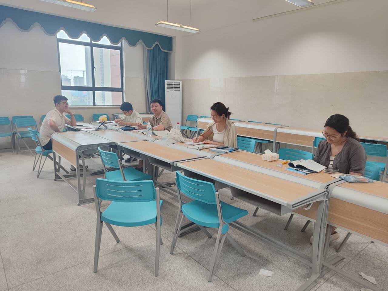 27日和28日上午,参与培训的青年教师分组在备课室进行集体备课。他们他们根据即将到来的学期的教学计划,系统地准备第一周的教学内容,并围绕开学第一周的教学内容展开深入讨论,从教材分析到课堂实施细节,每一环节都进行了严谨的梳理和准备。这一过程不仅增强了教师之间的协作,也提高了他们对课程内容的掌握和运用能力。