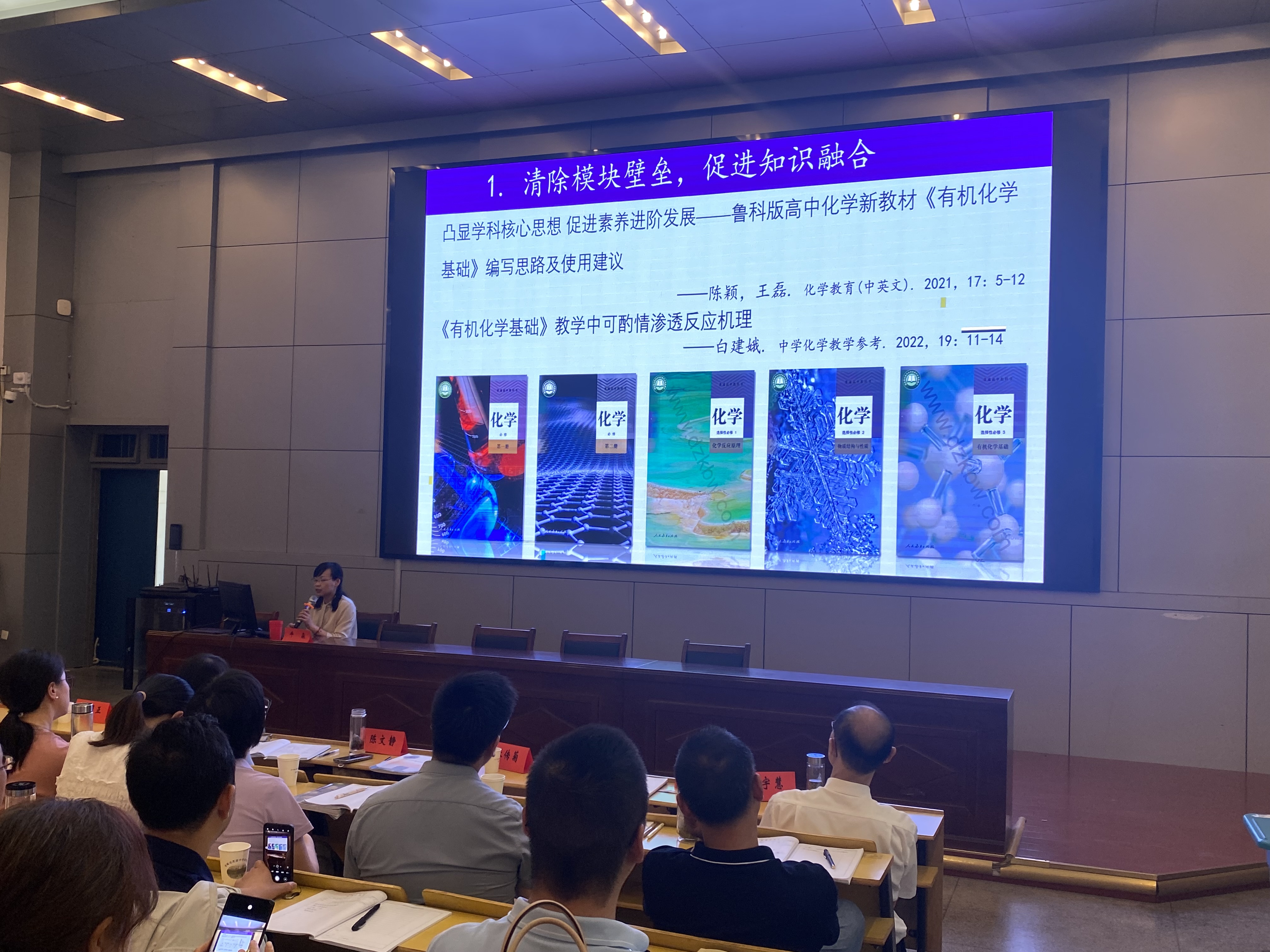随后,合肥七中牛淼老师带来了《学习视角下高中有机化学教材统整设计与研究》的精彩微讲座,以鲜活的案例和自身的教学经验,带给老师们的是满满干货。