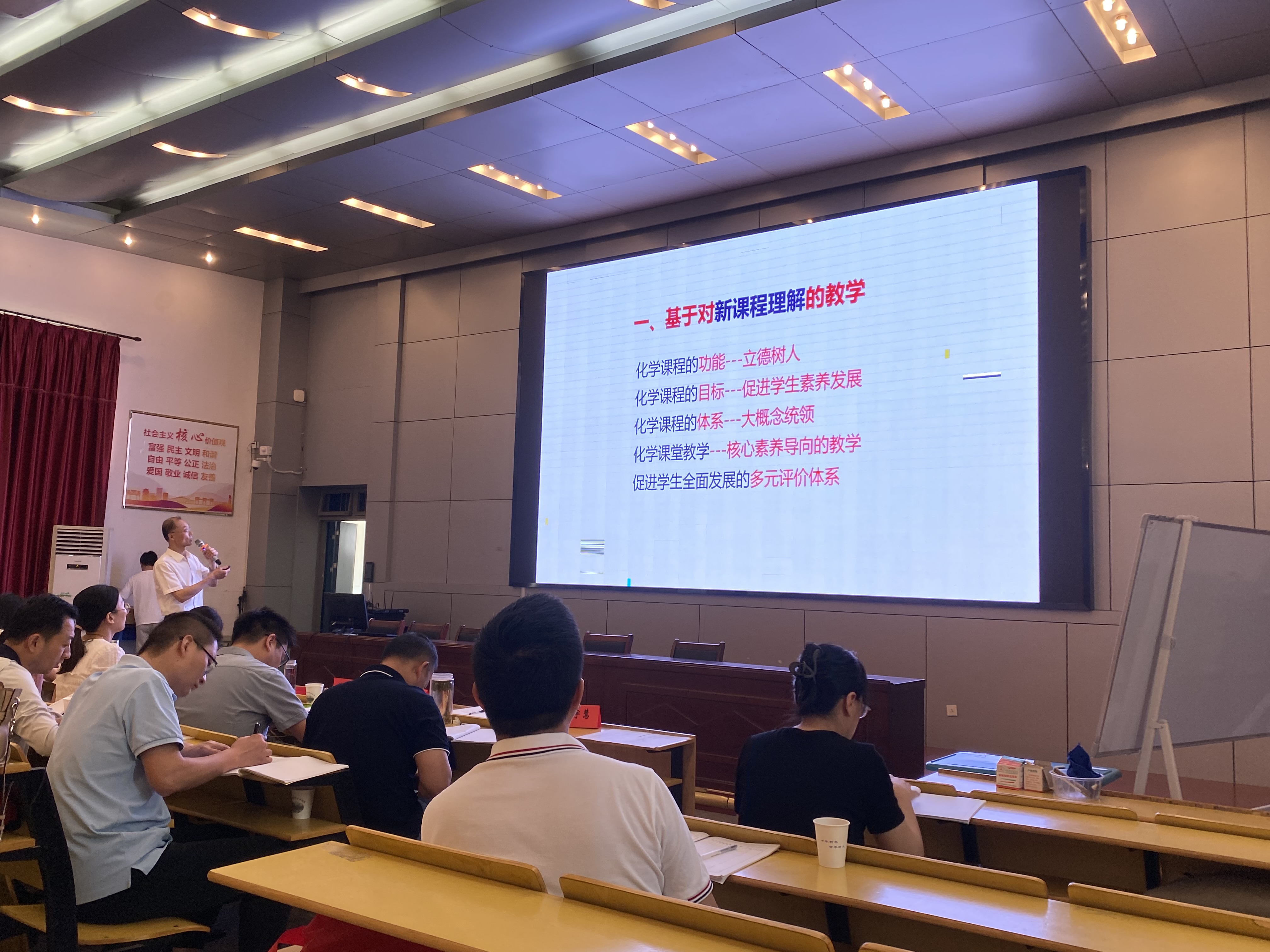 评课环节,由合肥市教科院陈文静主任和肥西县中学化学名师工作室领衔人唐永老师分别对这两节课进行点评,给予了很高的评价和充分的肯定。陈主任特别强调证据推理和模型认知是化学学科核心素养的思维核心,结合案例《基于化学反应原理多角度认识化学反应》和《铁及其化合物知识水平进阶》进行分析,参会教师很受启发。
