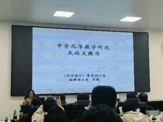12日上午,《化学教学》主编吴敏指导参会老师如何撰写论文,从选题到文章框架、研究方法及论证过程,指出了老师们投稿常见的误区和问题,以实例分析各个环节的写作思路。活动最后,教育部基础教育化学教学指导专委会副主任夏建华为参会老师带来新课标新高考背景下二轮备考建议,以实例分析解读了部分题型的解题思维和内容结构模型。