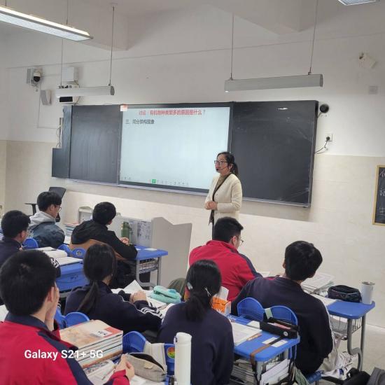 4月8日至13日这一周,历史组学科主任梁君华老师开设一节复习研讨课,探索“教学评”新高考复习模式,带领全组老师在今后一轮复习中广泛应用,最大化地提升一轮复习效果。语文组开展的是同课异构课,同一主题,但不同课型,杨露老师说课,侧重涵泳诗歌情感;羿宇廷老师上课,侧重锤炼诗歌表达技巧,各有千秋。化学组从本周开始启动选必三的教学,学科主任张传菊老师充分运用新课标教学理念,大胆尝试采用本原性问题引领课堂,将知识关联实现结构化,给组内老师一些新的思考和启发,深刻体会到课堂教学必须要变革才能适应未来高考和发展。