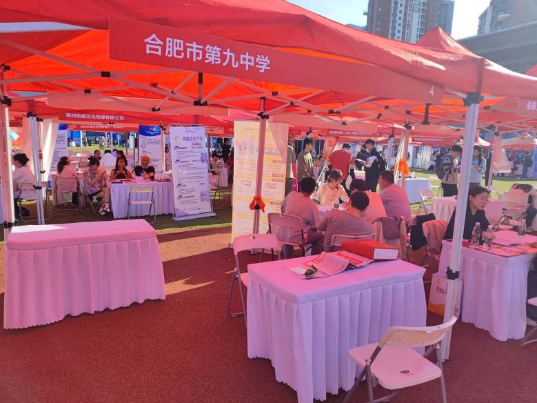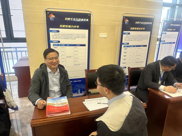 3月28日,在华中师范大学招聘现场,章伟书记与高校学子现场互动交流、深入面谈,从办学理念、师资力量、教学管理、教师发展多角度推介合肥九中,诚邀广大青年学子来合肥建功立业。学校展台前,学子们排起长队,与九中代表交流了解学校文化、发展前景以及岗位需求等,学校对前来咨询的各位学子的需求一一作出回应。