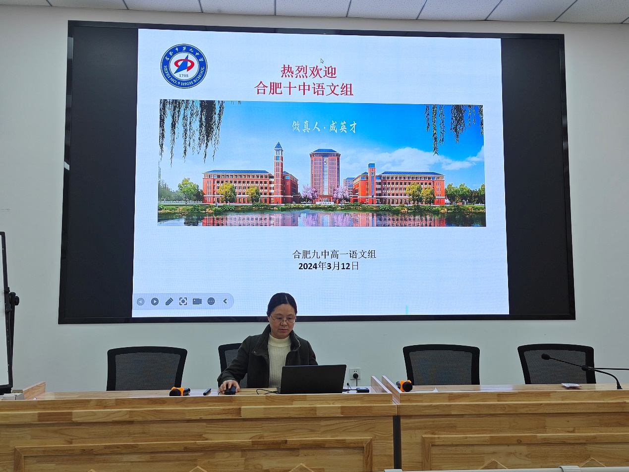 为了搭建互相交流探讨、学习展示的平台,合肥十中高一语文组全体教师齐聚合肥九中新站校区,参与合肥九中高一语文组集体备课活动。宋玉荣老师代表语文组热烈欢迎合肥十中的各位老师,并开启了本学期的第三次语文集体教研之路。本次活动共分为六个部分:课例展示、无声说课、集体评课和理论学习等,旨在通过深入探讨和交流,进一步提升组内语文教学的质量,推动教师的专业发展。