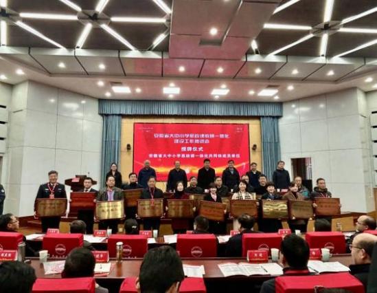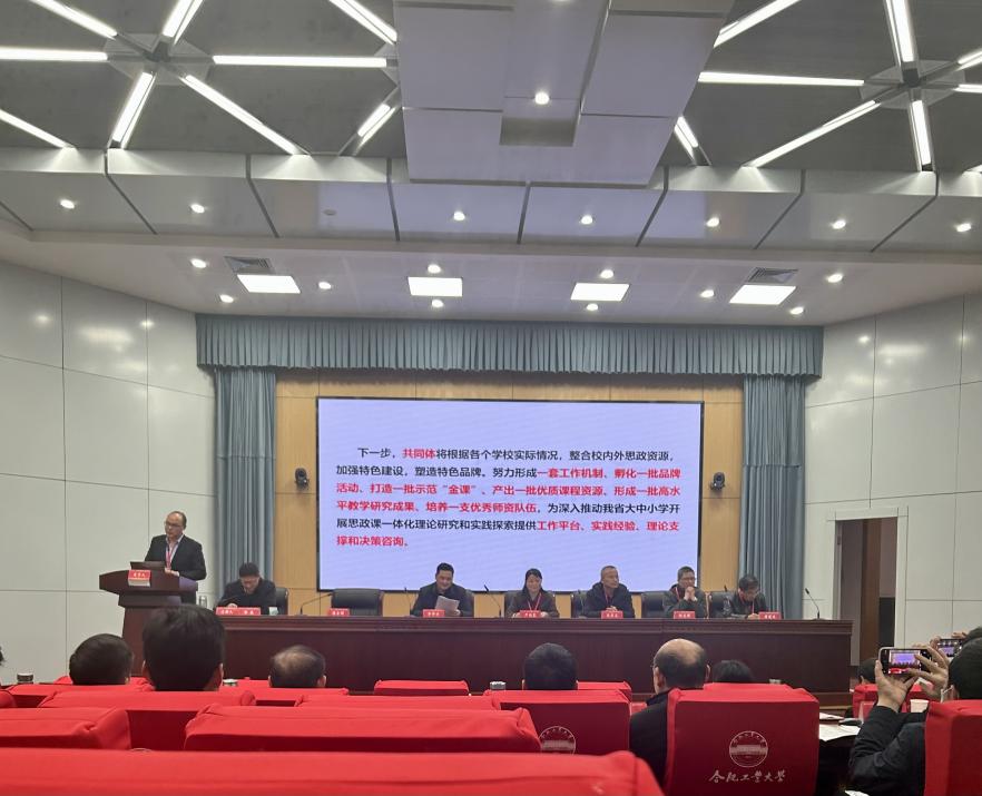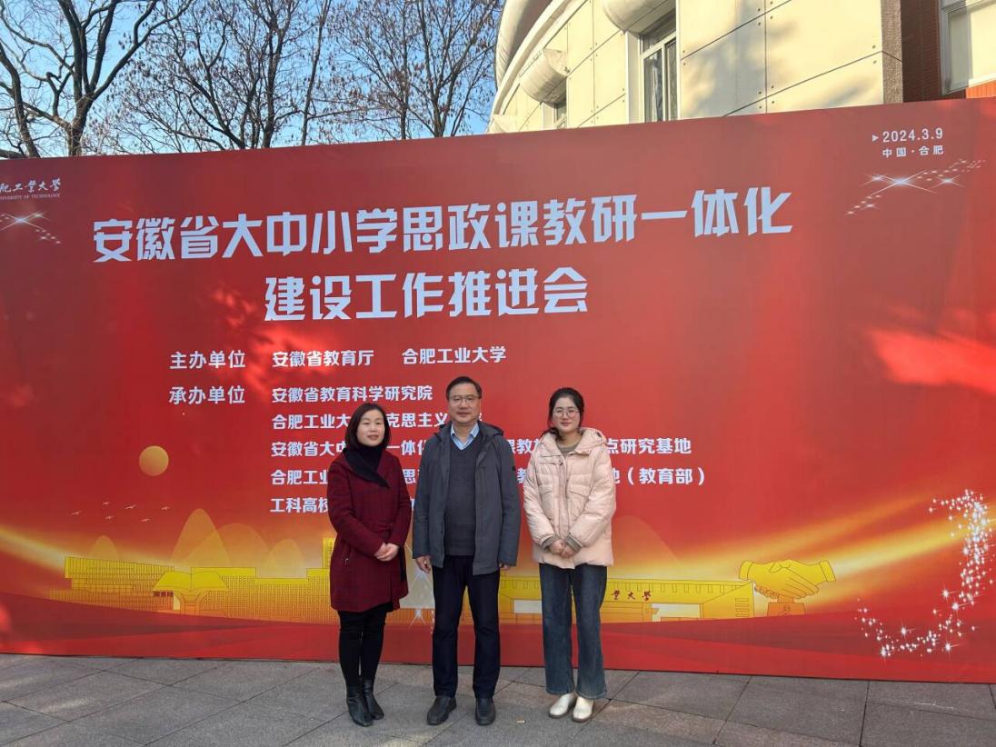2019年,习近平总书记在学校思想政治理论课教师座谈会上指出:“要把统筹推进大中小学思政课一体化建设作为一项重要工程,推动思政课建设内涵式发展。”5年来,在教育强国的背景下,安徽省围绕大中小学思政一体化建设做出了积极探索。为统筹推进本域大中小学思政课一体化建设,切实发挥思政课立德树人关键课程作用,全面增强思政育人效果,3月9日,安徽省大中小学思政课教研一体化建设单位推进会在合肥工业大学屯溪路校区举行,合肥九中作为安徽省大中小学思政课一体化共同体成员单位,由校党委书记章伟带队,率政治学科主任余海燕、政治老师叶倩参加了该活动。