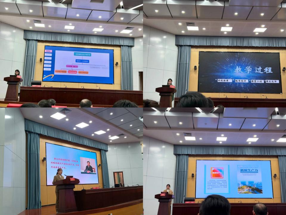 在课例展示环节中,来自小初高大不同学段的四位思政老师围绕主题“新质生产力”,打破学段的壁垒,带来了特色鲜明的同课异构。四位老师结合教材,科学把握大中小学课程目标要求,深刻领会不同学段课程目标,每个学段既单独成篇,整体上又循序渐进、螺旋上升。现场,唐莉教授和安徽省教科院中学思政教研员王庆荣先后对四位老师的说课进行了精彩的点评。