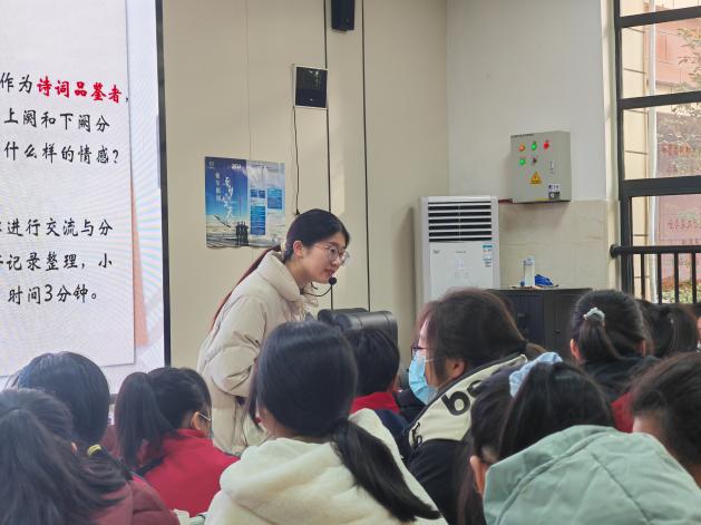 方敏老师以“一块石头”导入课题,调动学生兴趣,围绕“一封尺素寄深情,且以初心担使命”主议题,设置红色经典诵读会议学情境,从一封书信、一首诗词到一句担当,让学生从党史中感悟初心、从力行中品鉴初心、从赓续中淬炼初心,整堂课文化色彩浓厚,让同学们在品读经典中内化了学科知识。