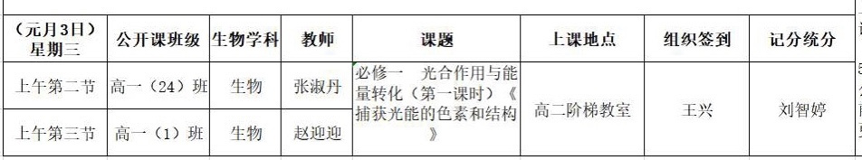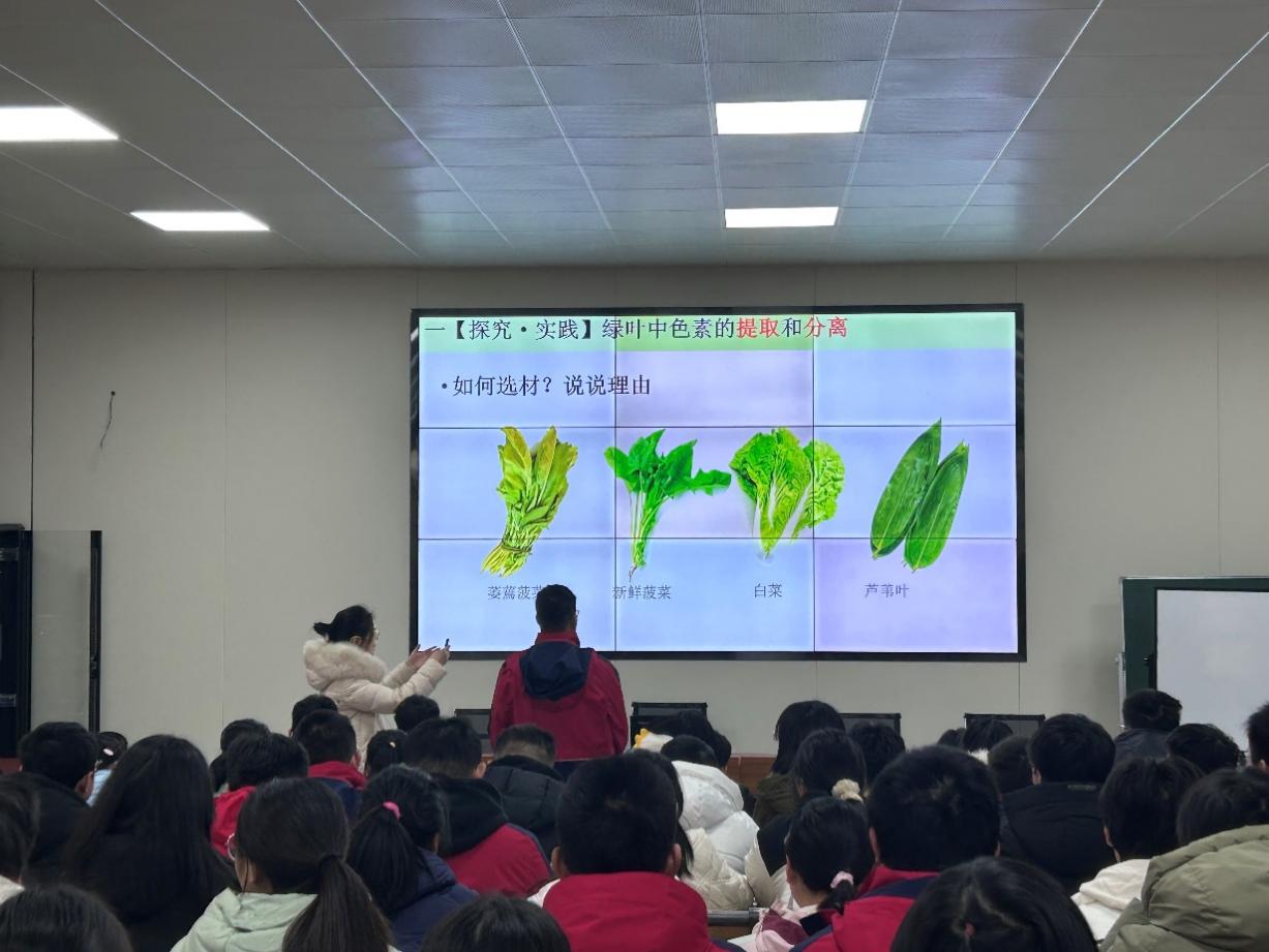生物学科的老师积极准备、踊跃参与。来自三个年级的五位教师精心策划教案、制作课件。于2024年1月2日和1月3日上午,在高二阶梯教室进行了《光合作用与能量转化(第一课时)捕获光能的色素和结构》的讲授。学校邀请了合肥一中瑶海校区教师陈昌园担任评委,学科组教师按时到场参与现场听评课。