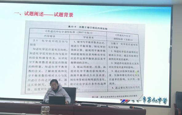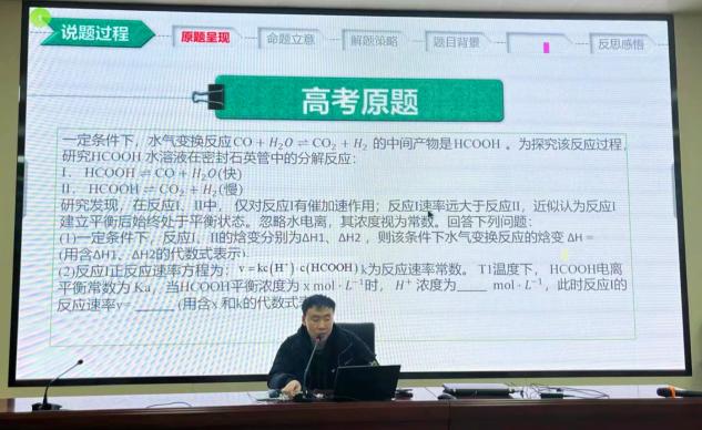 “说题”是教师钻研教材、探讨教法,不断提高教学水平的一种好方法,也是促进教师专业化发展的有效途径。为进一步落实新高考新课改新教材的学业评价理念,深入领悟学科核心素养,提高教师研究试题的能力,合肥九中化学组于2023年12月14日上午举行了说题比赛。此次比赛由学科主任张传菊老师主持,特邀合肥六中高二年级部邓中亚主任担任评委和点评专家。