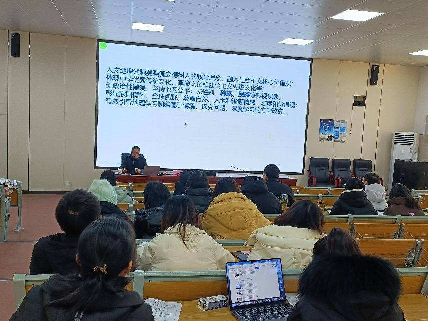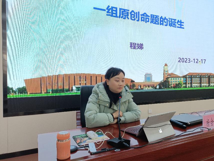 随后合肥七中地理学科主任程娣老师做了《一组原创命题的诞生》的报告,她结合命题的具体案例为我们阐述了命题的流程,并建议大家注意日常积累,坚持做题,多做题、做“好题”、“做好”题;坚持阅读,增加储备,加强认知;坚持思考,记录日常教学的闪光点;坚持查证,查阅论文、学报、官网等;坚持创作,设置情境,绘图展示,创设问题,打磨答案等等。