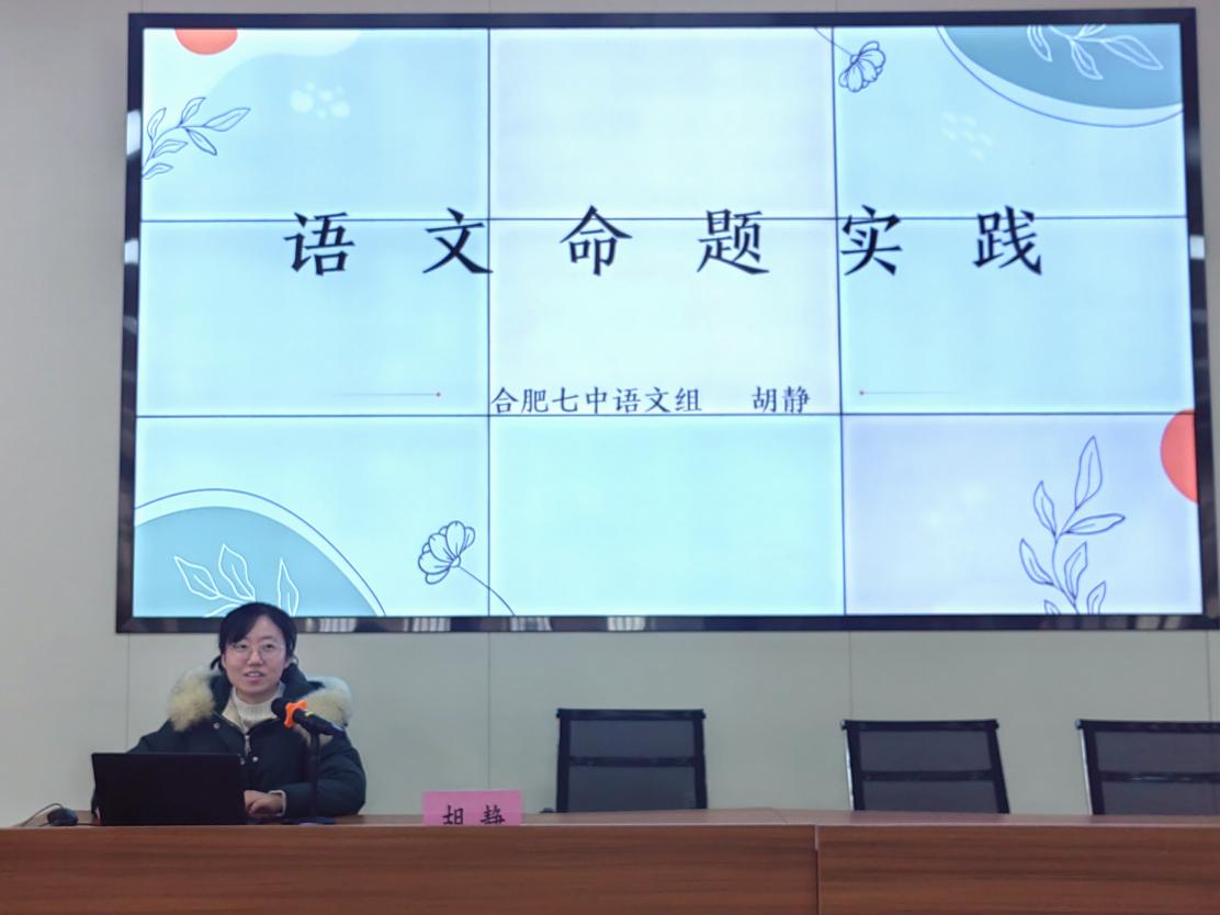 来自合肥七中语文组的胡静老师就语文命题实践作了经验分享。胡静老师从确定命题立意、制定能力细目表、着眼素材选取等方面入手,全面展示了命题的一般步骤。胡静老师在陈述的同时辅之以详细的试题案例,让种子教师们看到了试题释放出来的有关未来出题方向发展等方面的信号。此外,胡静老师还提到教师要重视命题的日常积累,通过编制课时和单元作业、设计整本书阅读测评试题等方式逐渐积累命题经验,并且要关注高考动态,时刻把握高考命题动向。