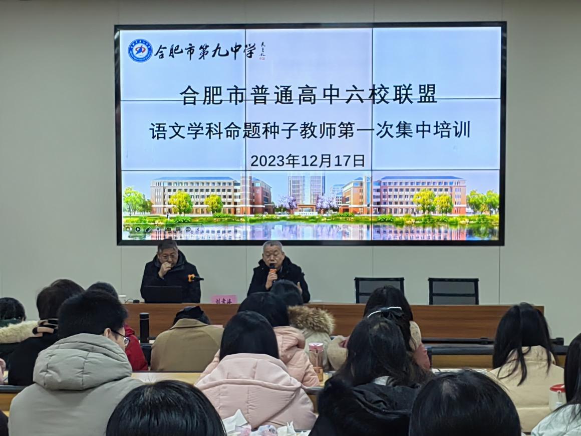为全面提升教师的命题能力,培养命题教师的创新思维和教育教学研究能力,促进教师专业发展,提高试题的科学性和有效性,合肥市普通高中六校联盟决定共同开展命题种子教师联合培训工作。此次六校联盟语文学科命题种子教师培训由合肥九中承办。12月17日上午,各成员校的参训老师冒着严寒齐聚九中参加培训。合肥九中语文学科主任单丹丹老师主持本次培训活动。