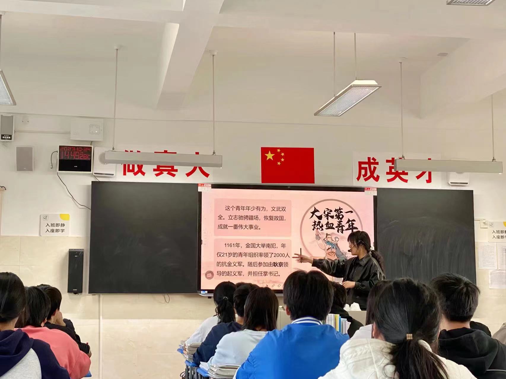 高启月老师的授课篇目是第三单元的《永遇乐·京口北固亭怀古》。高老师以词人辛弃疾的生平为切入点,抓住词中所用的典故,带学生了解了词人的境遇,体会了词人在词中抒发的复杂情感。高老师在教授课文的同时辅之以课外诗歌,帮助同学们更好地理解课堂内容。