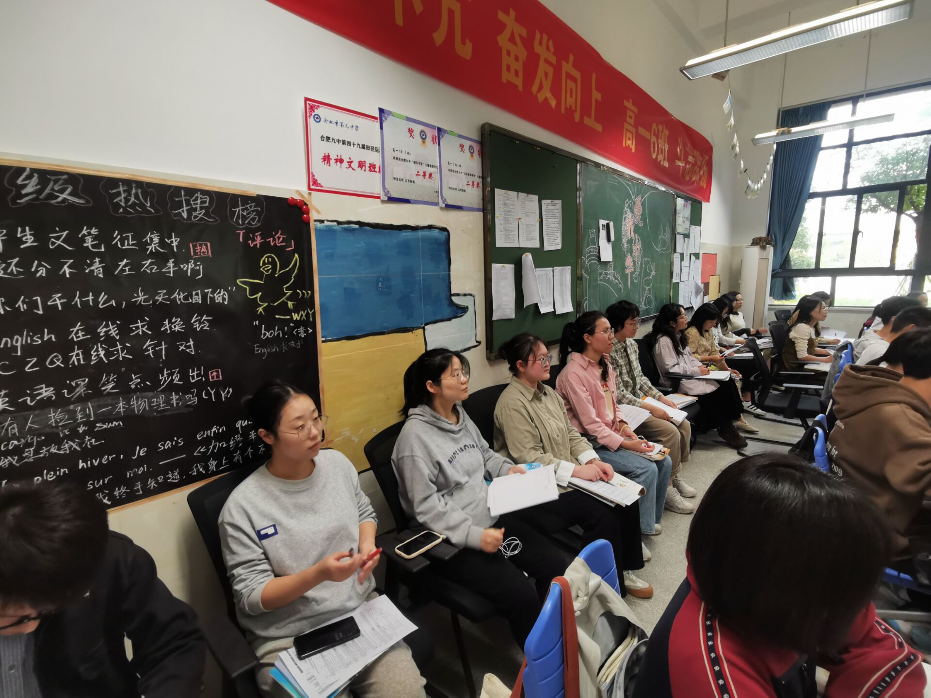 “学无止境,教无止境,研无止境”本次骨干教师示范课为高二青年教师提供了学习交流的平台,也为高二青年教师上课指明了方向。展名师风采促青年教师成长、自己也力争成为合肥市乃至安徽省有影响力的名师,是合肥九中中青年骨干教师共同的追求。