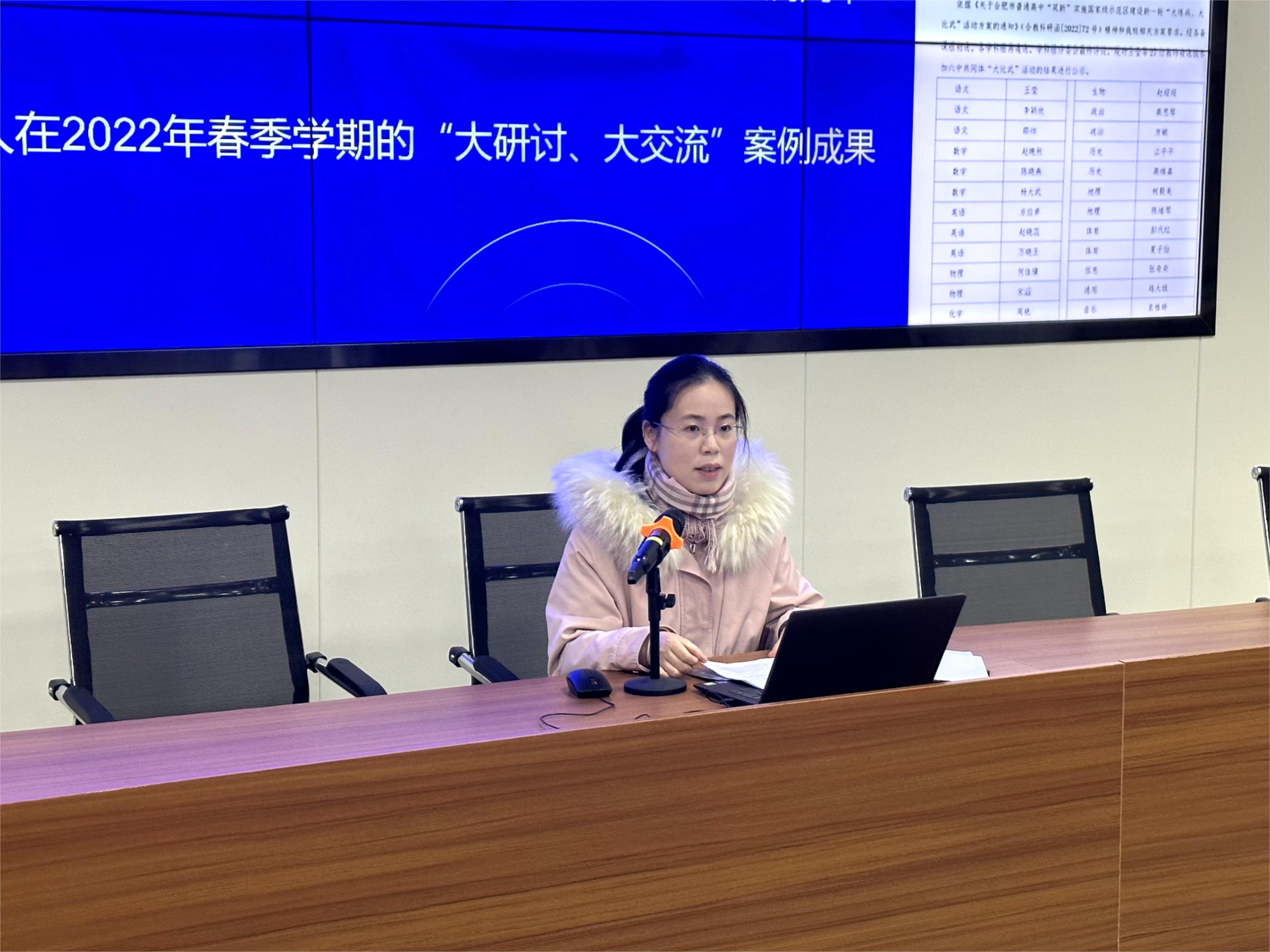 三位学科主任代表——语文组单丹丹、政治组余海燕和化学组张传菊分别就本学科上学期的教科研工作作经验交流。