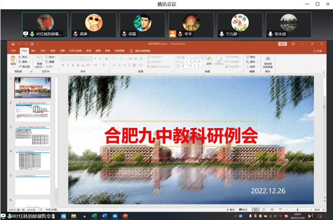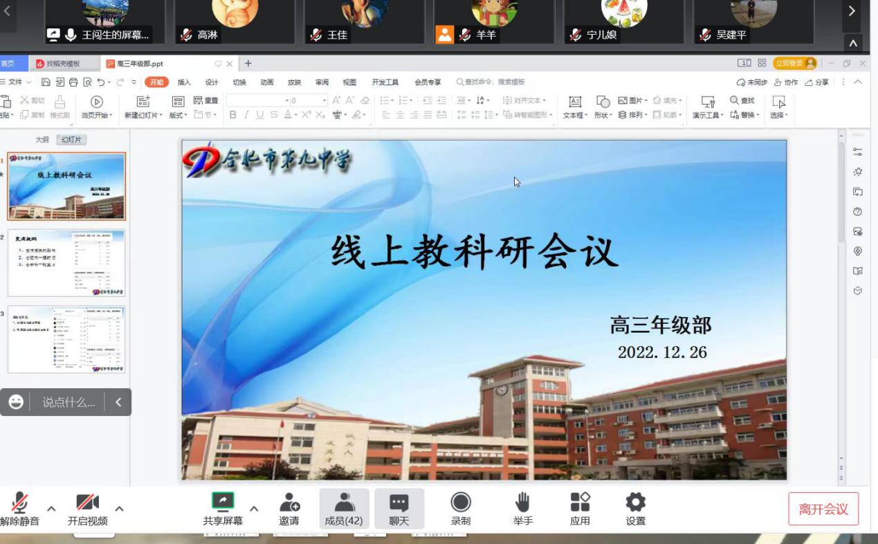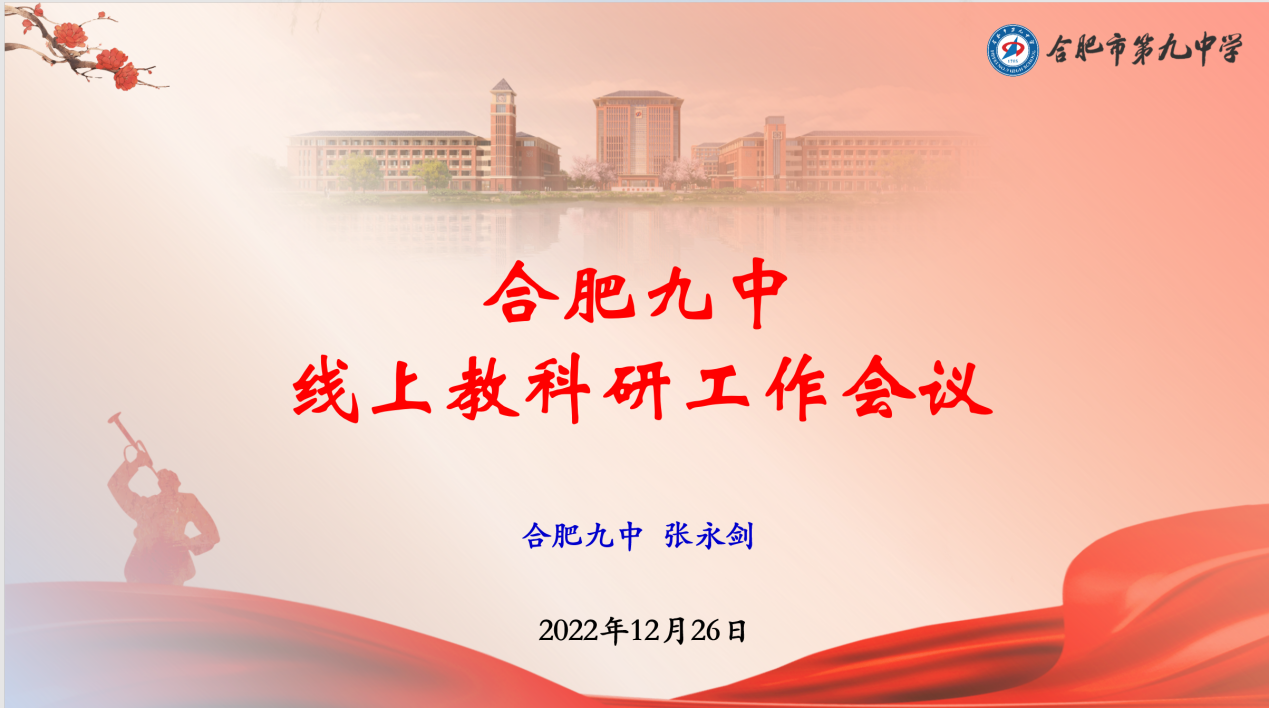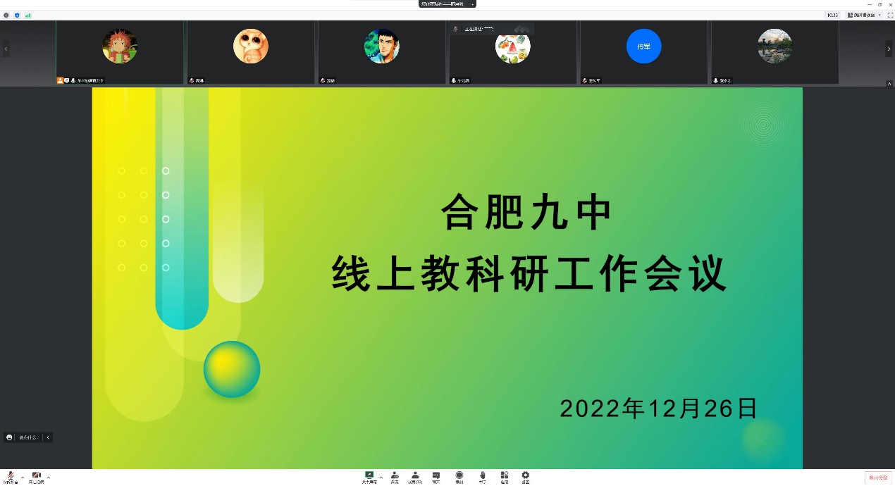 为更科学有效地开展线上教学,推进期末工作安排,12月26日晚,合肥九中全体学科主任、教研组长开展线上教科研工作会议,会议由教研室何羚杰老师主持,教务处、教研室和三个年级部的各位主任以及张永剑副校长悉数参会,传达上级指示,稳步推进线上教学教研工作,为即将到来的寒假做好部署规划。