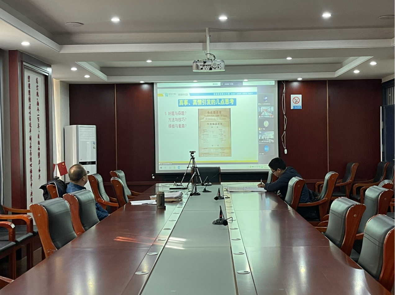 2022年12月2日下午14:00—16:30,合肥九中新高考历史试卷命题解读专家报告分别在四牌楼校区和新站校区同时进行,学校特别邀请了教育部高中新教材试教团队成员、潍坊市高中历史教学能手、潍坊市高中历史学科领军教师、潍坊市高中历史学科基地马光贤名师工作室主持人马光贤担任主讲人。全体历史教师分别在四牌楼校区行政楼二楼会议室和新站校区行政楼11楼会议室准时参加这场线上报告会,会议由历史学科主任梁君华主持。