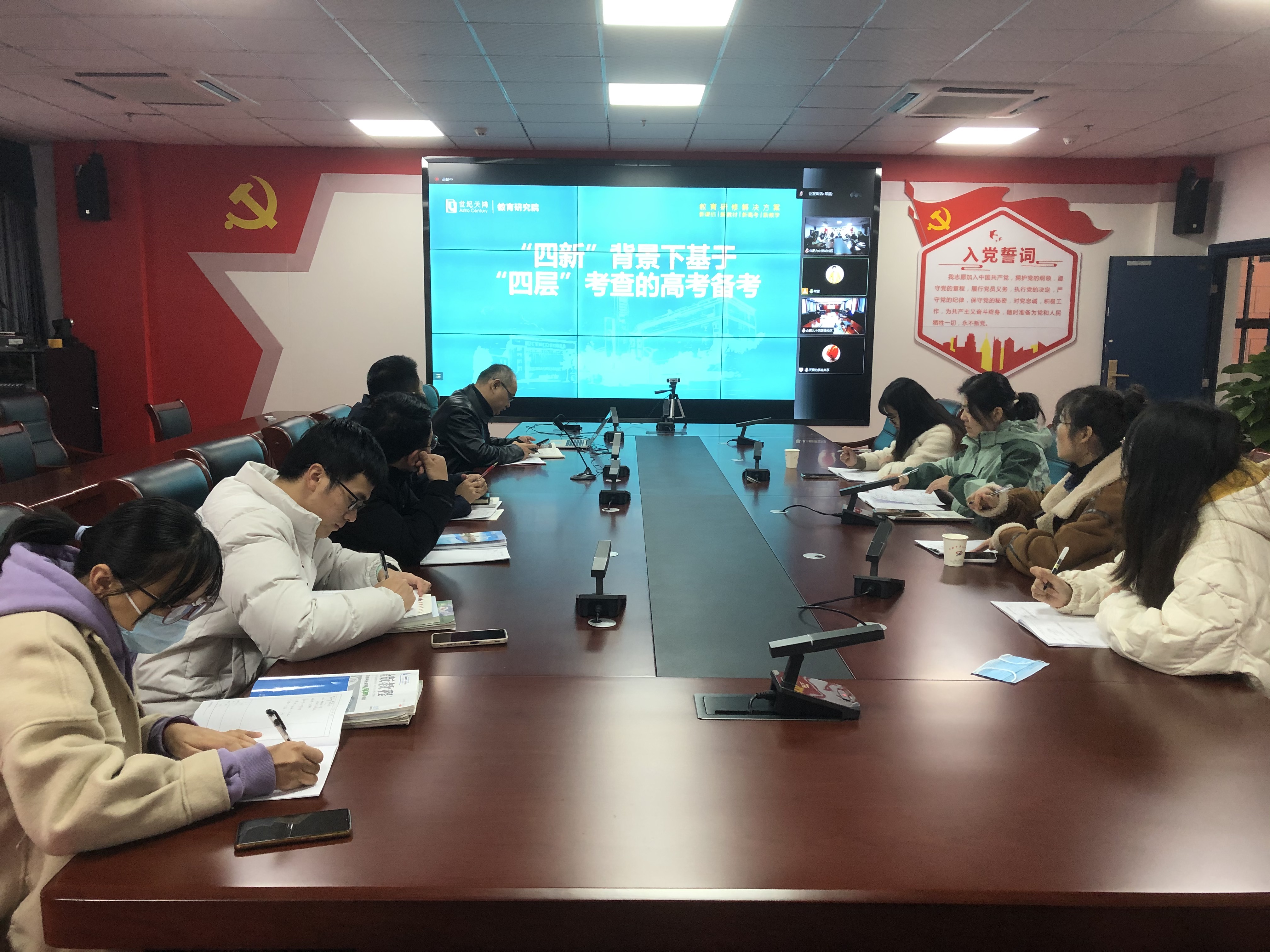 为了更好的促进合肥九中教师团队的快速成长,也为了更快速的契合新高考、新教材。合肥九中与本周开展了全学科新高考试卷命题解读专家讲座,地理学科与本周三上午八点五十准时进行。学校特别邀请了山东省潍坊市优秀教师、师德标兵、地理教学能手赵亮老师主讲,讲座的主题为“四新”背景下基于“四层”考查的高考备考。合肥九中地理组教师全体参与。