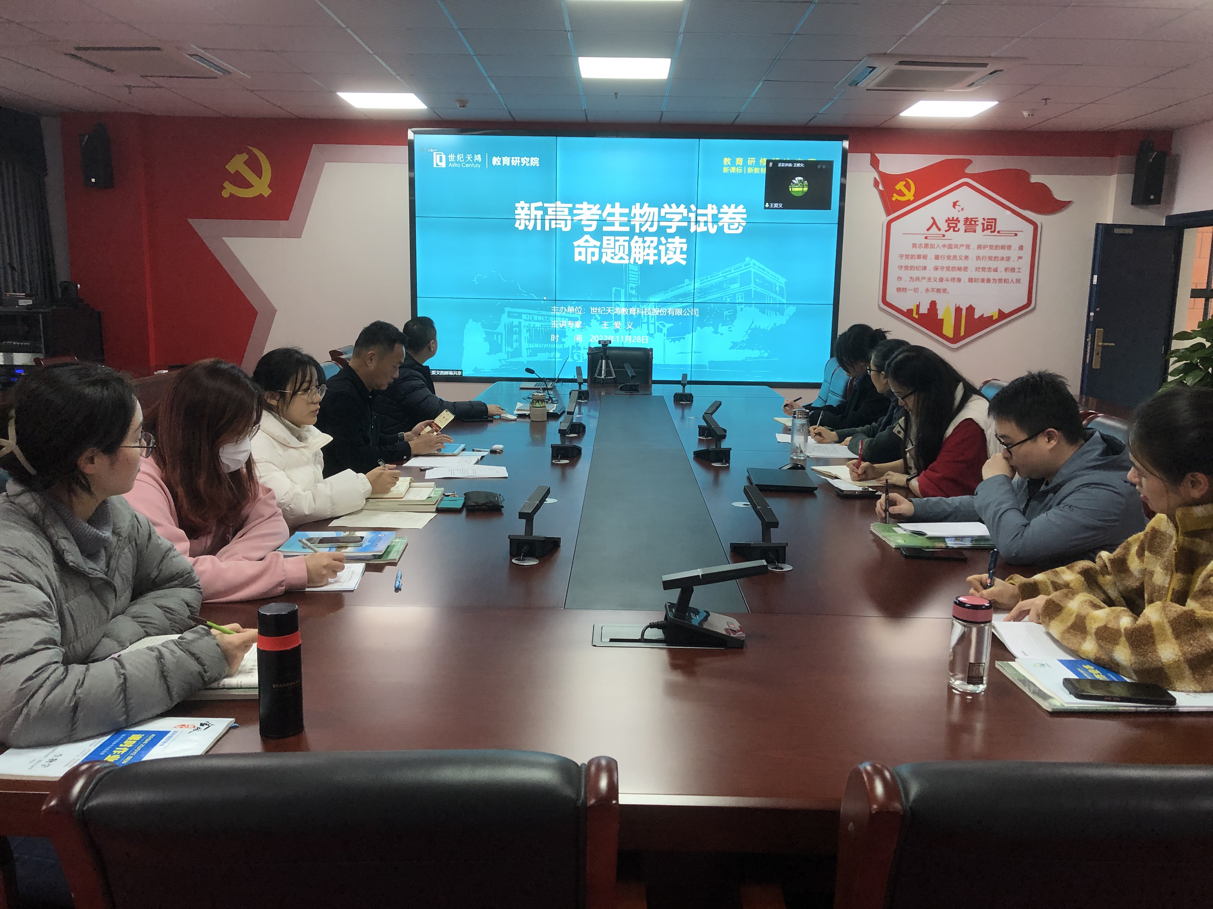 在合肥九中上下一心奋勇争先谋发展的大背景下,作为老高考和新高考相衔接的一届、也是合肥九中新老校区承前启后的一届高三,2023届高三的工作寄托着学校的厚望和全体九中师生的希望!为在“双新”实施背景下更好的帮助2023届高三教师把握2023年高考的命题趋势特点及科学确定复习备考策略,提升高三课堂教学效率,11月28日下午,学校特别邀请山东省青州市教育教学研究院正高级教师、副院长、高中生物教研员王爱义老师为合肥九中以高三生物教师为主的生物老师们开展了题为《新高考生物学试卷命题解读》的专题讲座,合肥九中生物学学科组全体教师参会学习。