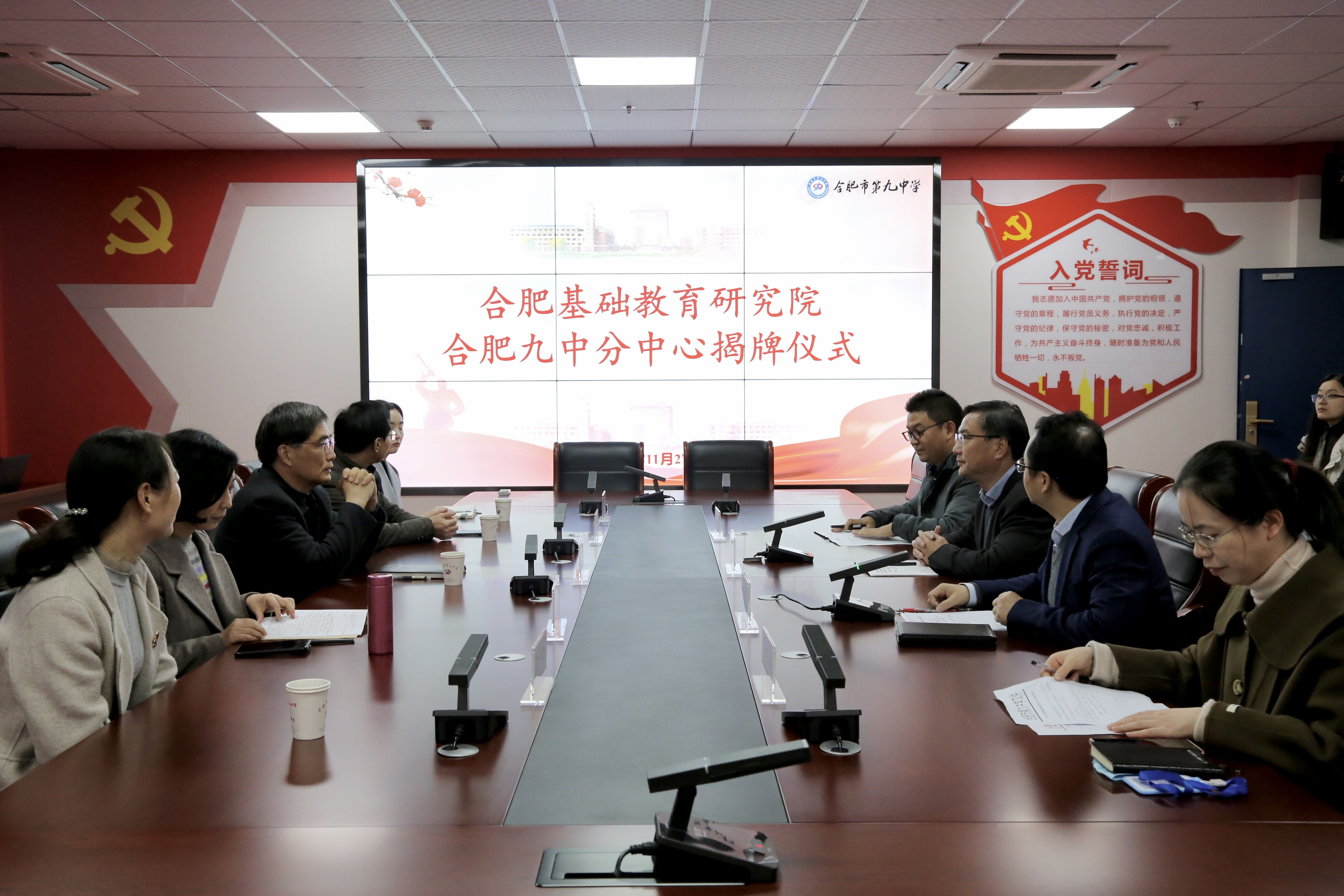 2022年11月22日下午,合肥基础教育研究院合肥九中分中心揭牌仪式在合肥九中新站校区养正楼11楼举行。合肥市教科院副院长陈明杰和合肥九中校党委书记、校长章伟出席揭牌仪式并发言,仪式由校党委委员、副校长张永剑主持。