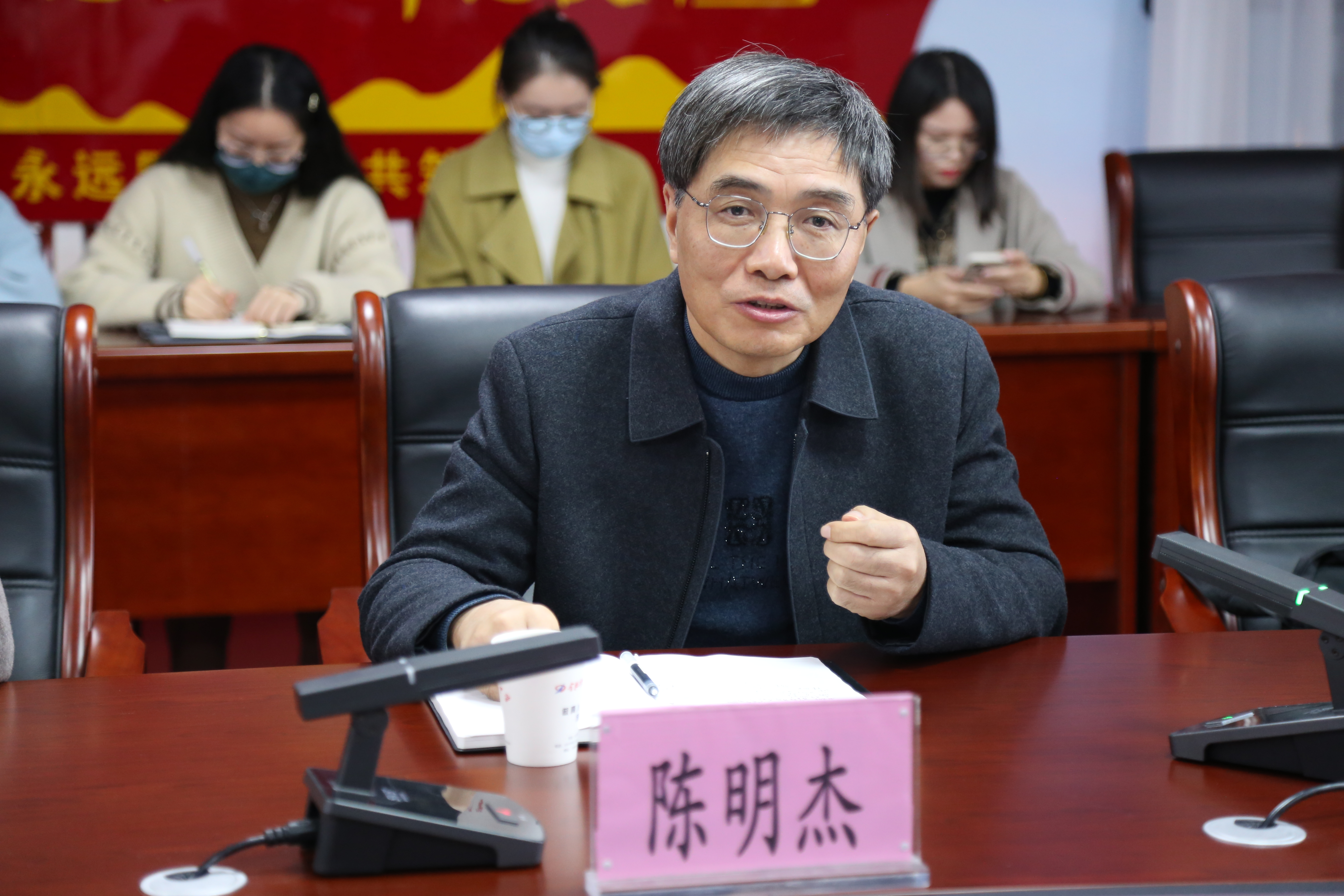 陈明杰肯定了九中揭牌仪式的高效简洁,既展示了学校工作的良好作风,又展现了学校对教科研工作和教师发展的重视。他指出九中的加速发展,学科主任的引领是关键,学科主任的工作状态和精神面貌将直接影响学科教师队伍发展。他同时提醒学科主任要承担起引领责任,合肥九中师资力量雄厚,老教师经验丰富,新教师潜力巨大。合肥市教科院将为教师发展提供良好的平台,为学校发展提供更大的支持。