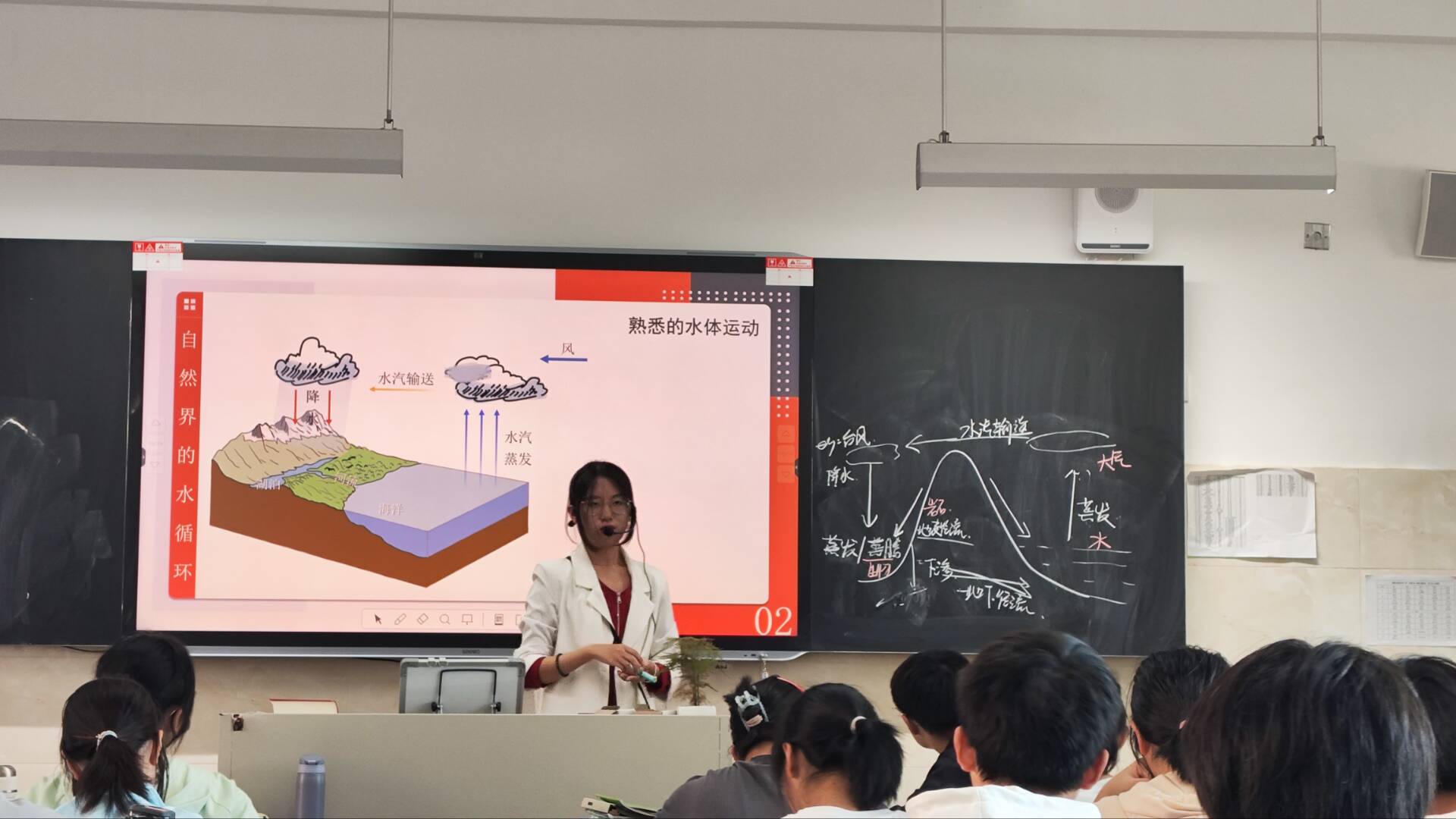 在水循环过程的讲授中,徐书航老师用示意图将水循环环节表示在图上,帮助学生直观的去理解,并让学生运用水循环原理解释安徽洪水的爆发原因,锻炼了学生利用所学知识解决生活问题的能力。