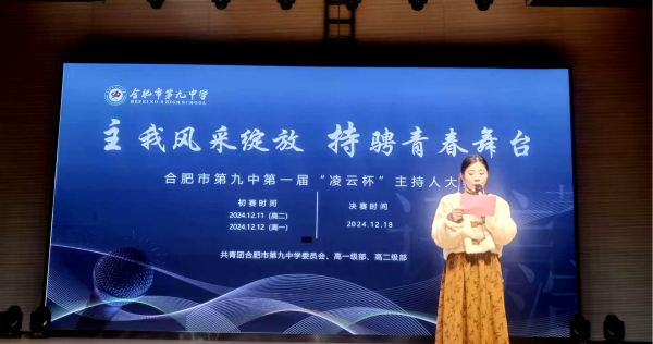雅音袅袅、风采卓然。为丰富学生们的课余生活,感受校园人文魅力,加强校园语言文字规范化和普通话推广,感受声音与文字之美,因此合肥九中校园科技文化艺术节文化筑梦板块系列活动中,特开展“主我风采绽放、持骋青春舞台”主持人大赛。2024年12月18日大赛决赛于合肥九中庐州学堂圆满完成。
