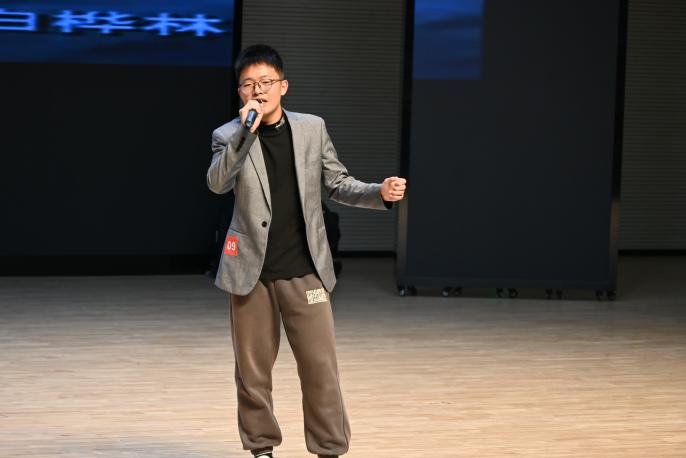高一(10)班鲍明昊同学以挥洒自如的台风、稳健的音色表现力,将经典歌曲《奔跑》唱出了对人生的深刻思考,正如歌词所言“全力奔跑,梦在彼岸,即使再小的帆也能远航”;高一(20)班何俊杨同学带来的《无名的人》致敬平凡中的平凡,让大家感受到了生活的温度;高一(15)班瞿子博同学带来的《晚安》以温柔的旋律温暖人心,尾声一句“祝大家晚安”更是迎来了台下的掌声与欢呼;高一(22)班惠微笑同学以其独特嗓音和深情演绎,赋予了《说散就散》鲜活的生命力,用优异的唱功诉说着主人公从迷茫到释然的情感;高一(10)班夏涵睿同学将歌曲《白桦林》的深情与壮美表达的淋漓尽致、高一(9)班郭西贝同学唱出《玫瑰少年》的勇敢前行之力量……