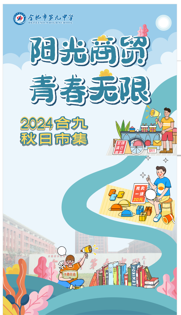 合肥九中2024年“阳光商贸、青春无限”主题活动于2024年9月29日至30日在俭园前举行。本次活动三个年级分时间段摆摊售卖、交换。