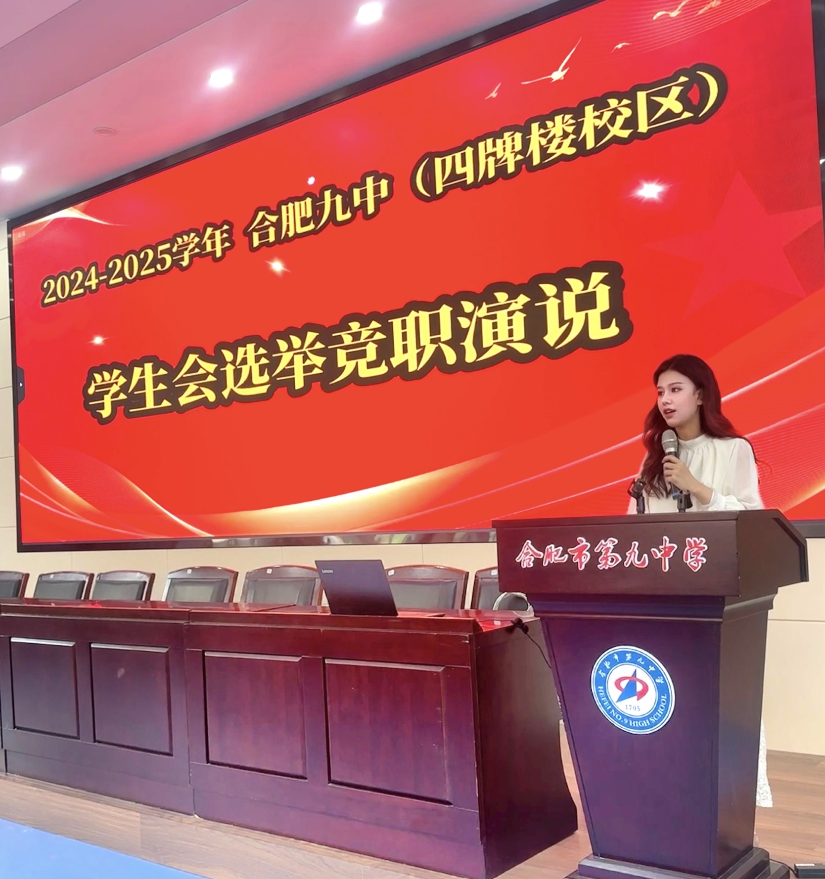 为进一步加强学生会的建设,合肥市第九中学四牌楼校区在经历为期一年的改造升级后,旧貌换新颜。于9月6日上午在一楼汇报厅举行四牌楼校区第一次学生会竞选活动。
