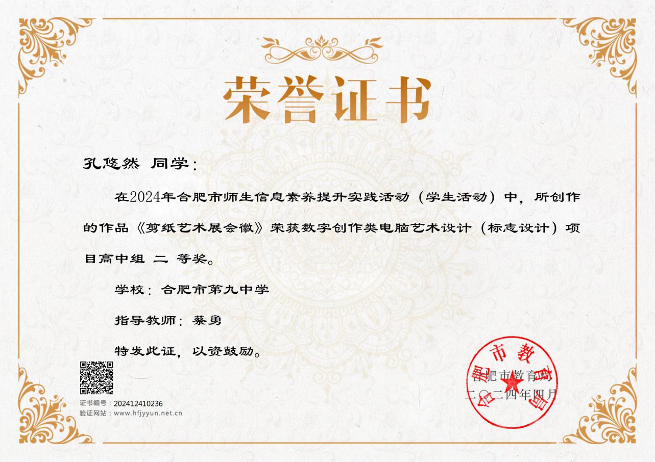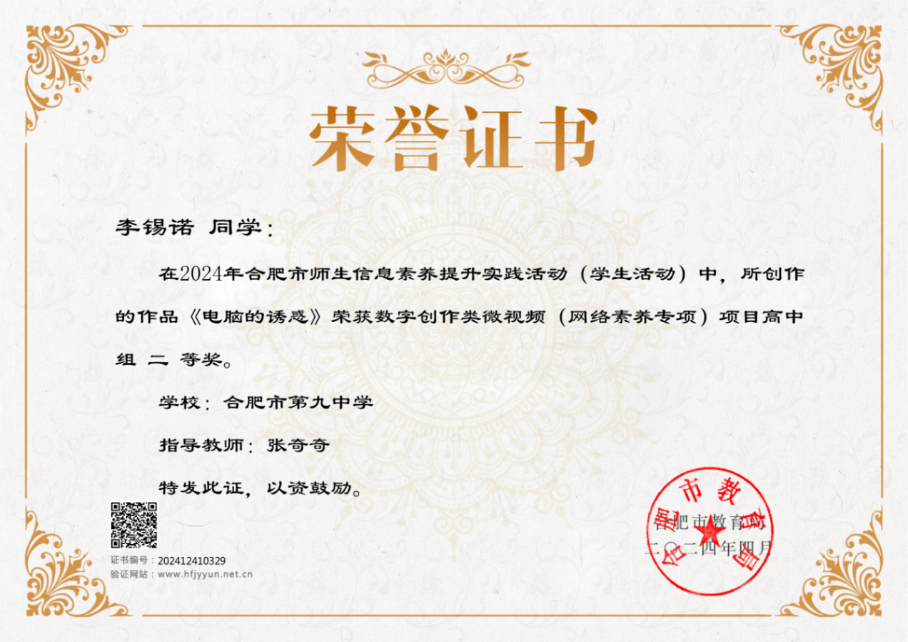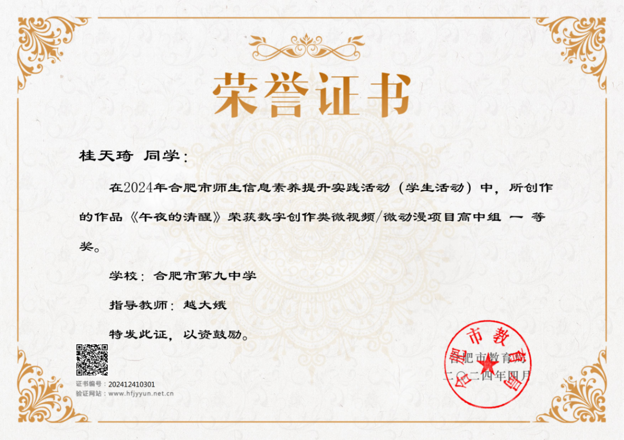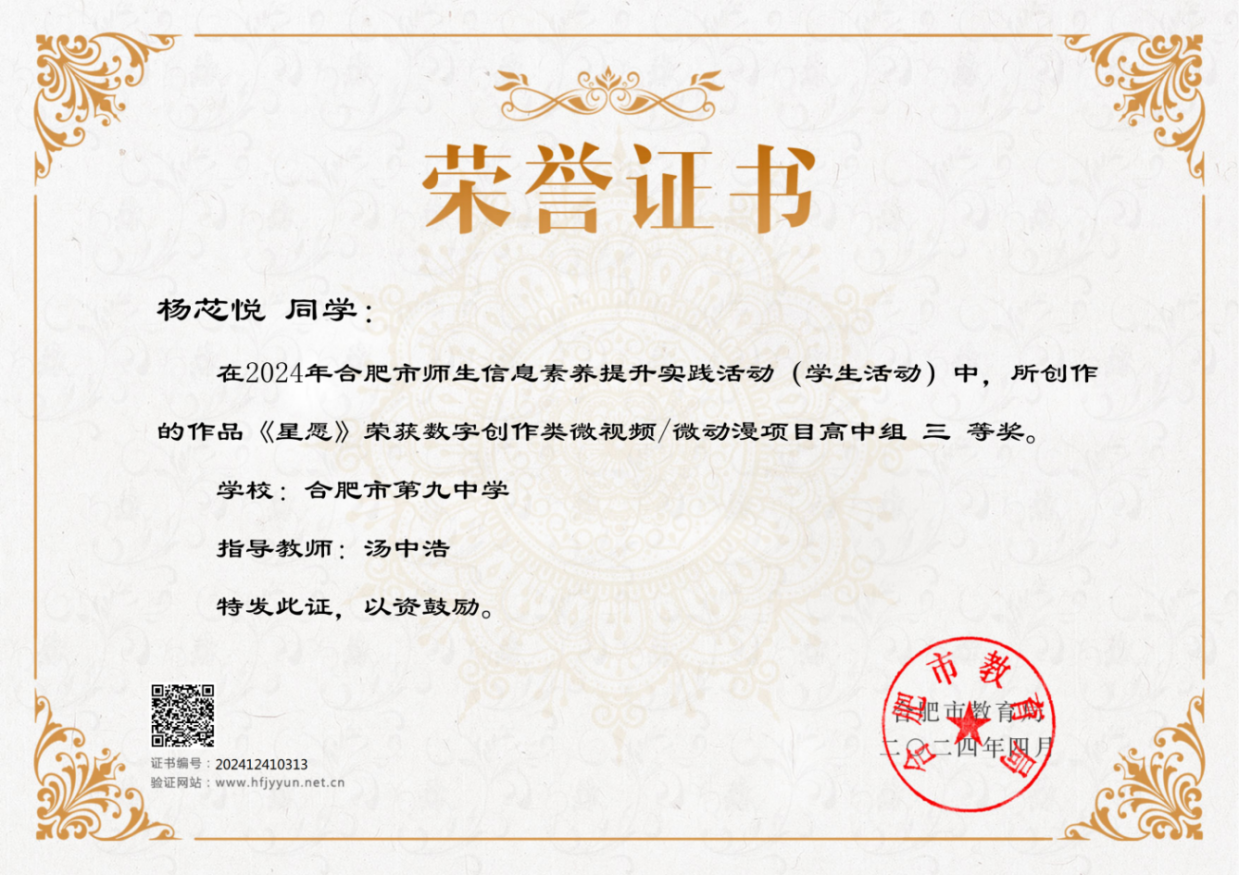 日前,2024年合肥市中小学生信息素养提升实践活动结果揭晓,合肥九中学子凭借良好的信息素养和创新实践能力在此次活动中荣获佳绩,共计10项作品获奖,其中一等奖作品2项,二等奖作品3项,三等奖作品5项,并有5项作品被推荐参加省赛,本次作品的获奖层次及数量在合肥市市属普通高中学校中名列前茅!