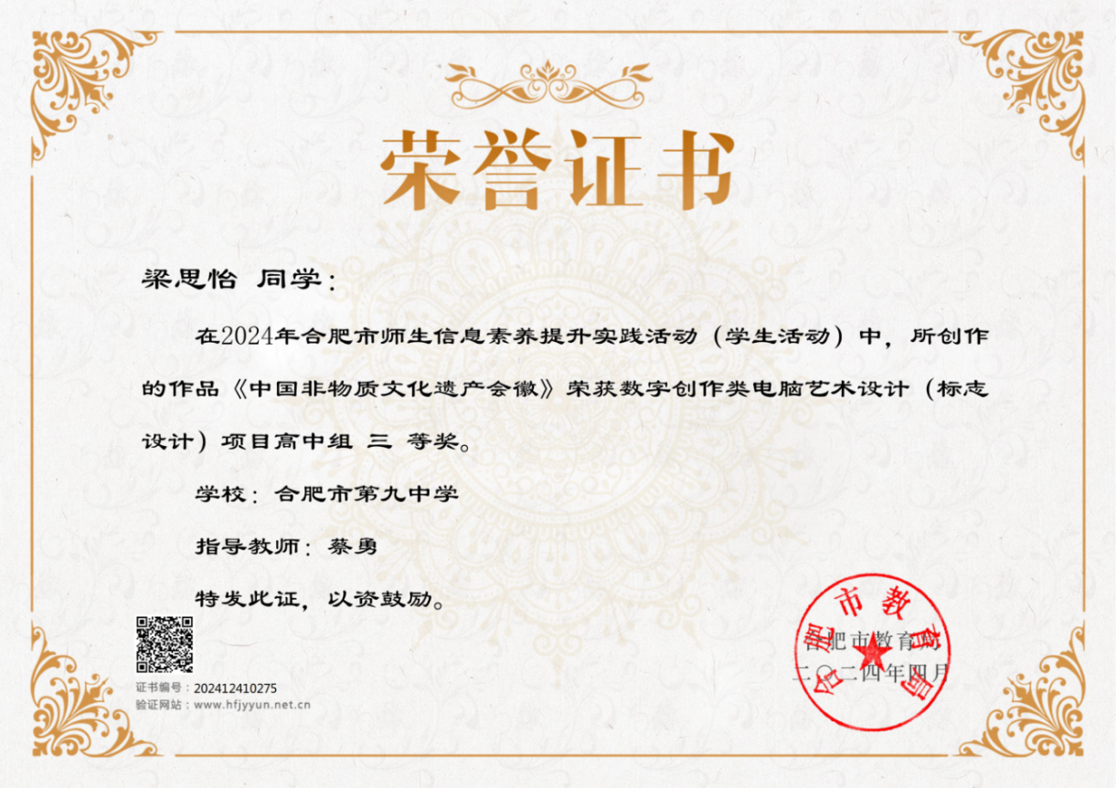 数字创作 | 电脑艺术设计(标志设计) | 中国非物质文化遗产会徽 | 梁思怡 | 蔡勇 | 三等奖 |