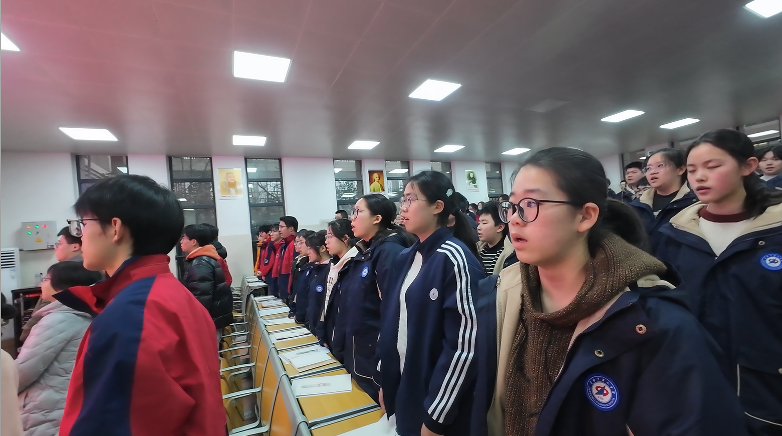 全体人员共同唱响团歌。激昂的旋律和坚定的歌声,表达了对共青团组织的热爱和忠诚,也展现了合肥九中同学们的青春活力和奋斗精神。青春的炽热与时代的召唤在此刻交汇,化作砥砺前行的磅礴力量。