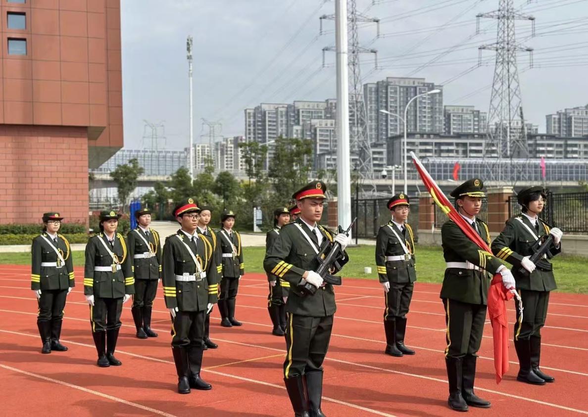 2024级国旗班随后入场,全体成员经过选拔与两个多月的训练,新一届国旗护卫队已具备完成升旗任务的能力。