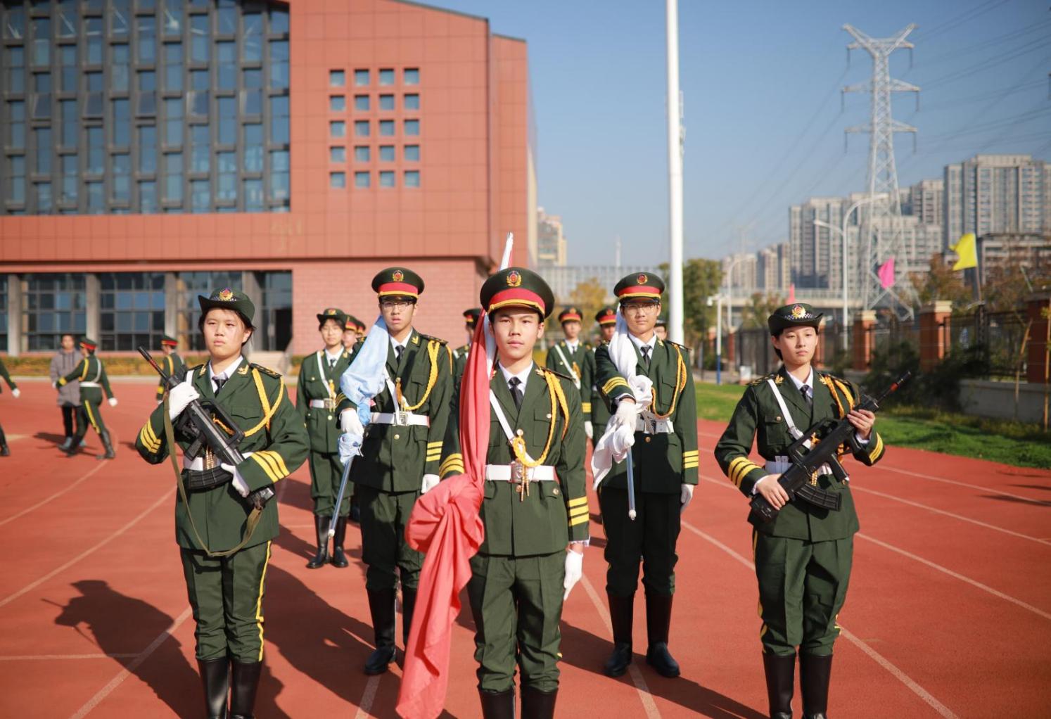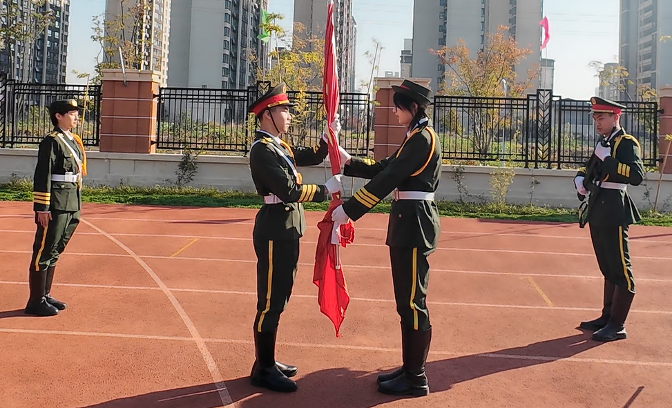 随即,国旗交接环节备受瞩目。23级国旗班执旗手将鲜艳的五星红旗郑重地交到新国旗班执旗手手中。交接仪式肃穆举行,这不仅仅是护旗人员的变更旗,更是国旗班成员责任与使命的届届传承。标志着过往坚守荣耀的交接,新的队员手中接过对面象征着荣誉的国旗,接过那份责任,我们坚信国旗在你们的守护下,未来使命新篇章的开启,一定会更加耀眼。