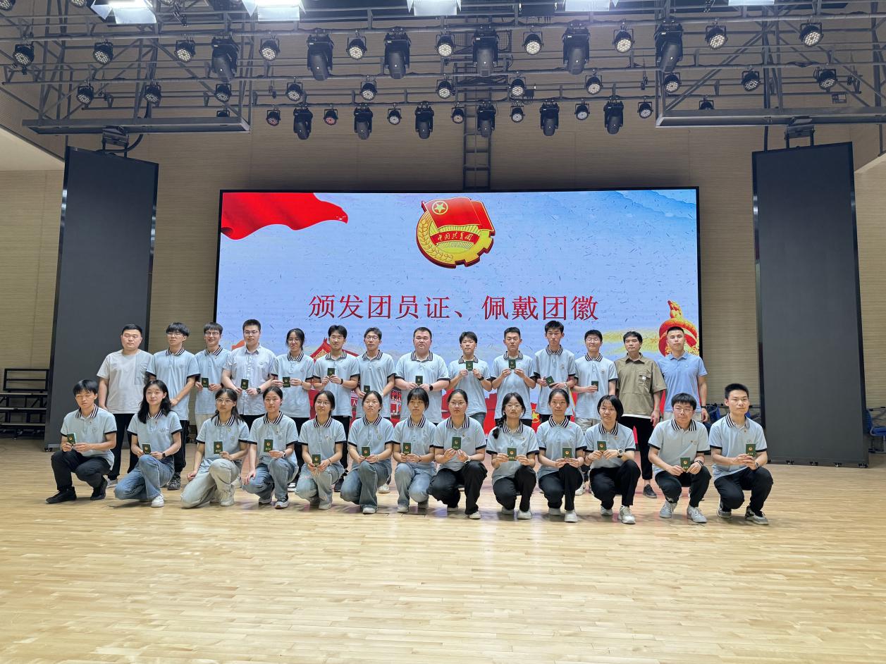 大会第四项,三个年级团总支书记为新团员颁发团员证并佩戴团徽。团员证不大,却是新团员身份的象征,意义非凡;团徽鲜艳,是先辈们的心血凝结,更是对后辈的祝福和期许。