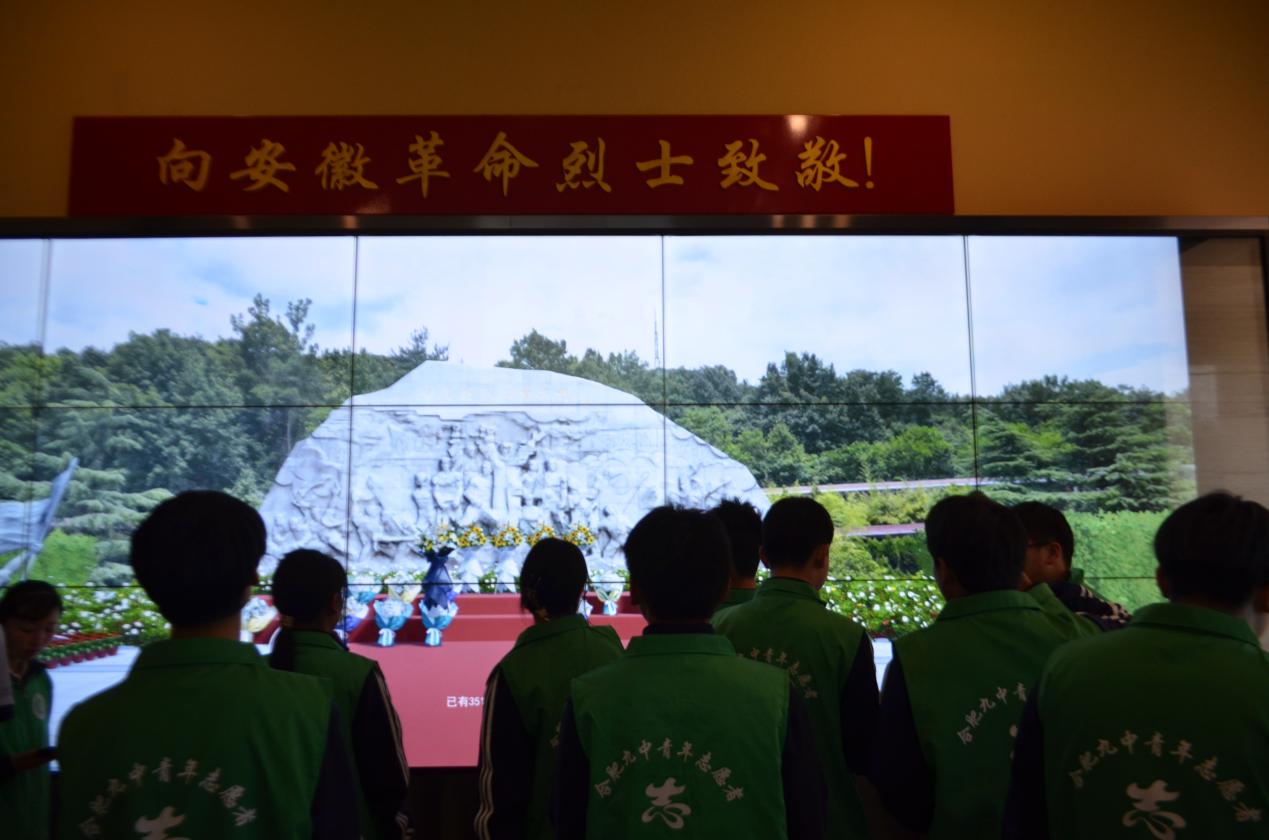 从陈列馆出来之后,是宣誓仪式。所有志愿者们井然有序地站成一排,铿锵有力地宣誓着。烈士们的光辉照耀着青少年们,引领着他们早日投身于实现中华民族伟大复兴的道路。