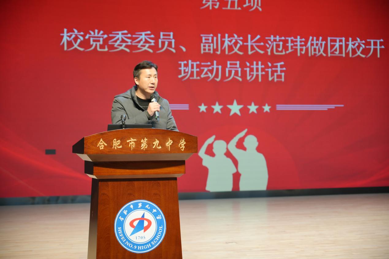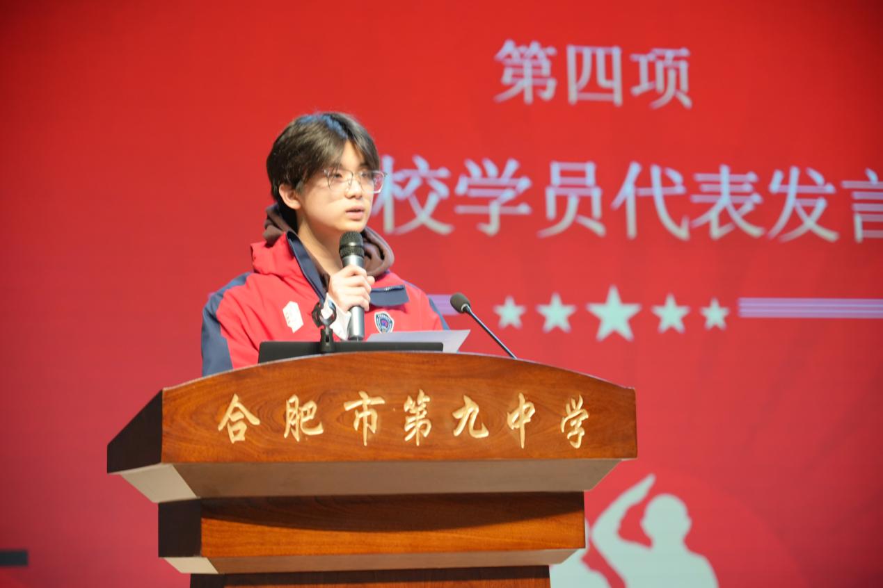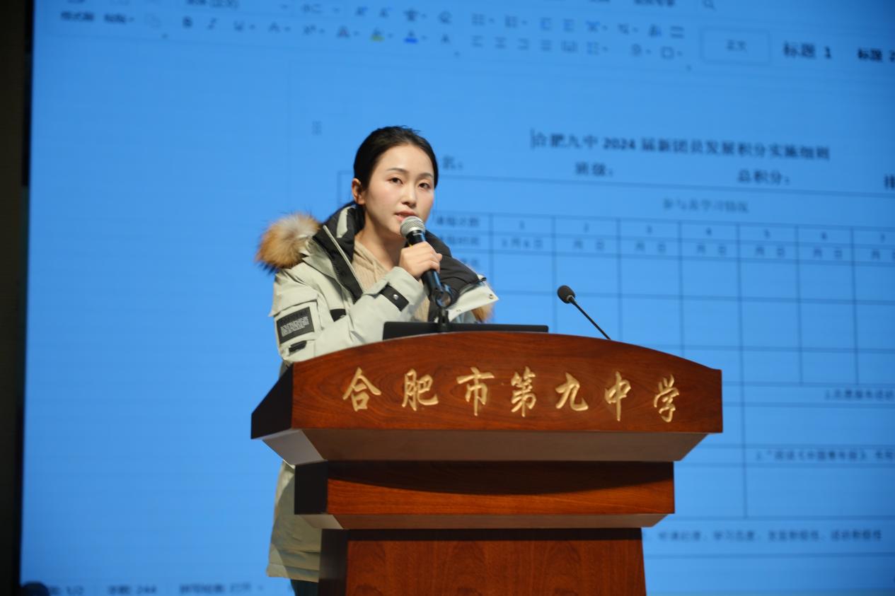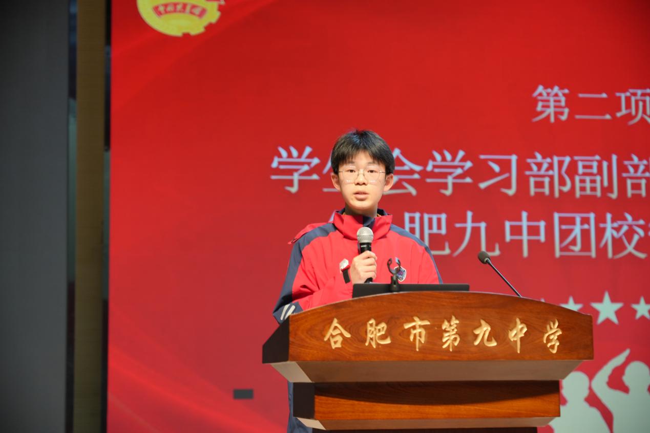 校学生会学习副部长高一7班盛翔同学宣读《合肥九中2024届团校管理制度》,让各位同学明确团校的管理模式。